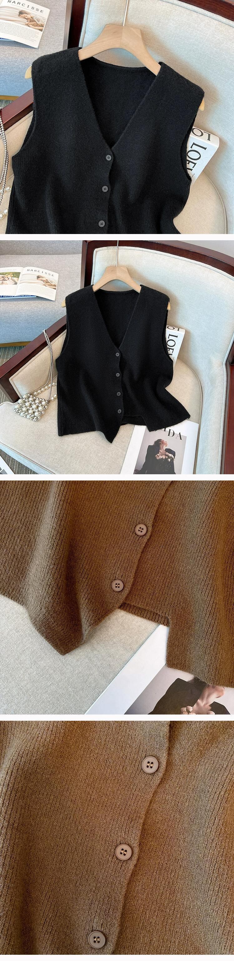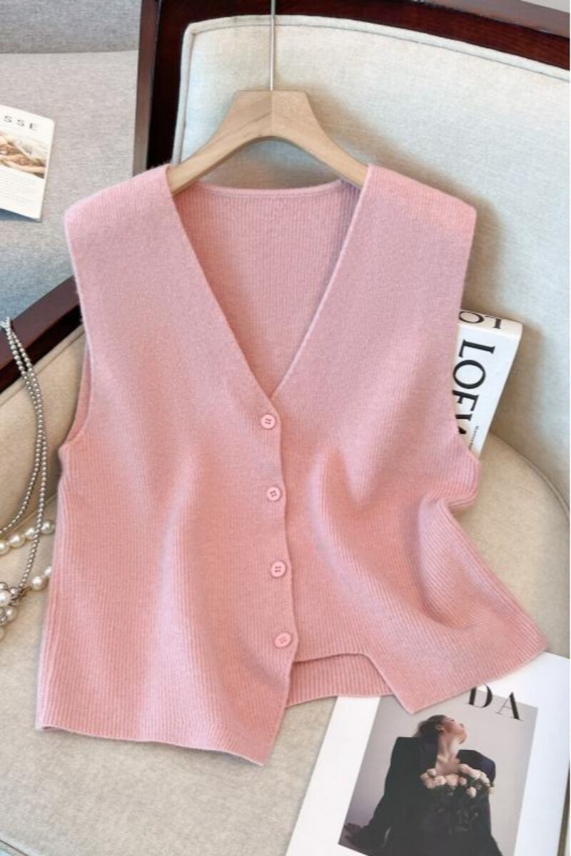 プラスサイズの婦人服 2023 ファットシスター秋の新 V ネックデザインスリムチョッキカーディガンニットベスト 大きめサイズ オータム 秋物 Vネック 8884194715395309