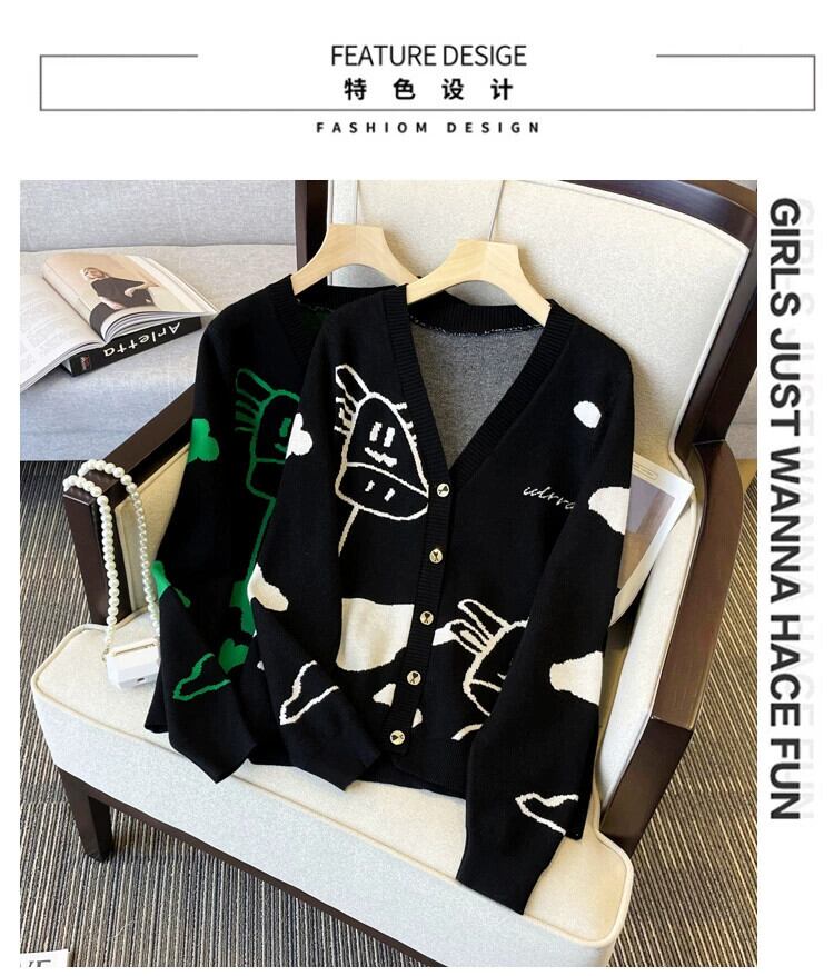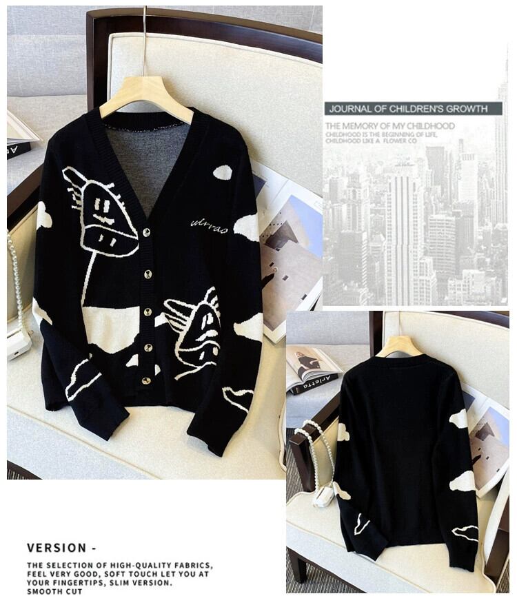 プラスサイズの女性の 2023 新しいハイエンドニッチ年齢低減セーター脂肪 MM アニマル柄痩身秋カーディガンジャケット 大きめサイズ オータム 秋物 8884199385515872