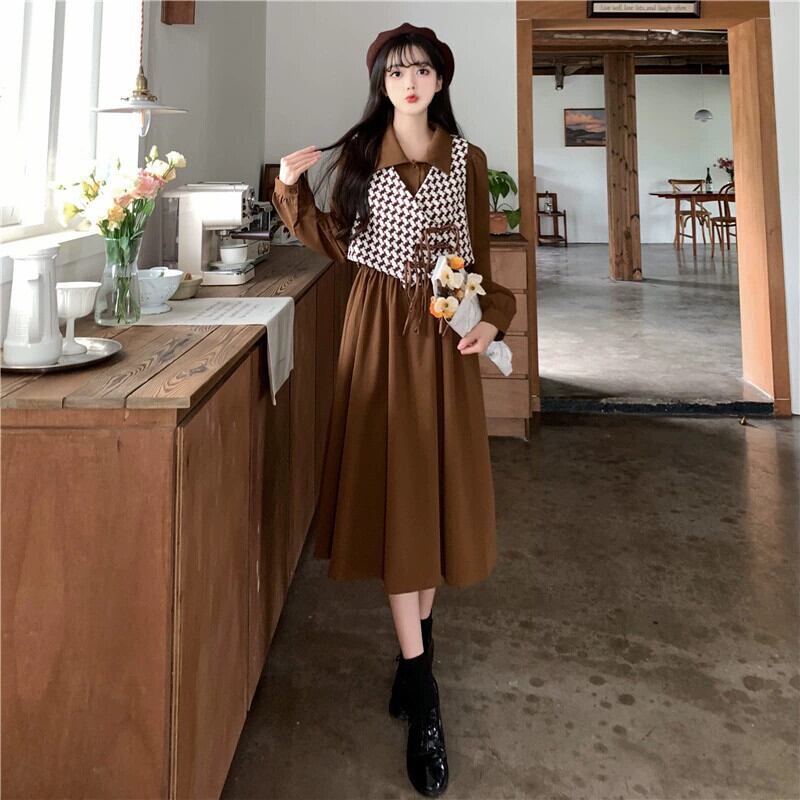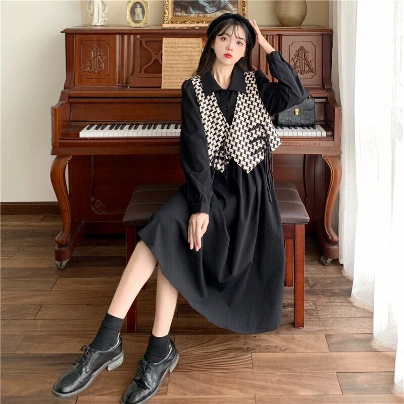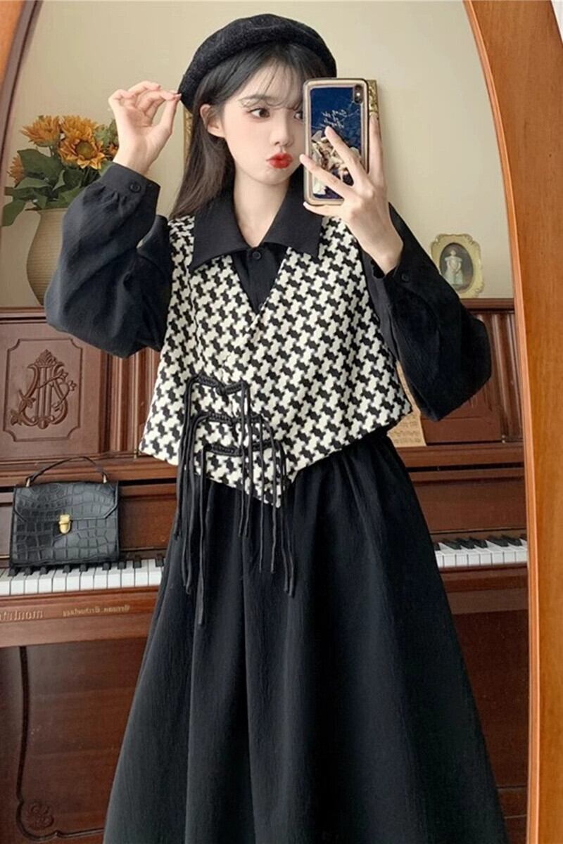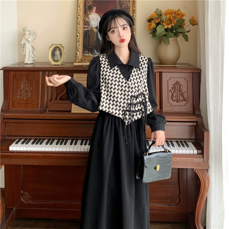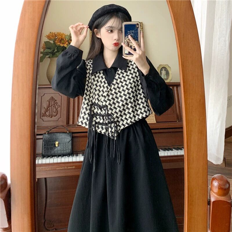 2023年新作プラスサイズドレス太mm、お腹カバースカートとベストスーツ女性、お肉をカバーして痩せて見えるロングスカート 大きめサイズ 8884192015411280