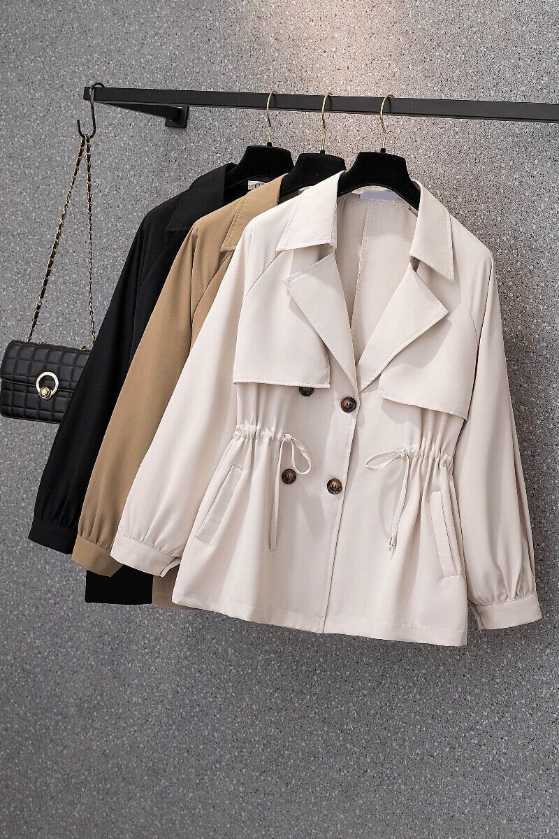 プラスサイズの婦人服ファット mm 秋の新スタイル 2023 ハイエンドミッドレングスウエスト締め緩い腹カバーウインドブレーカースーツジャケット 大きめサイズ オータム 秋物 8884135290656626