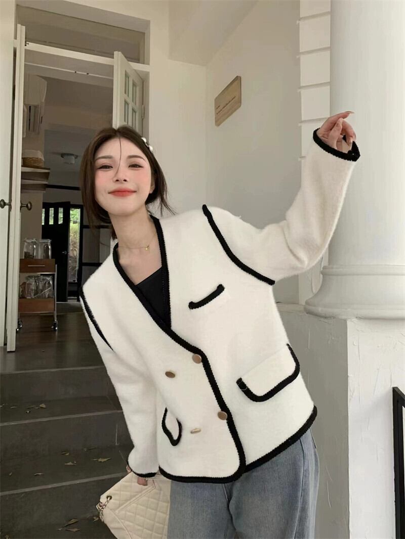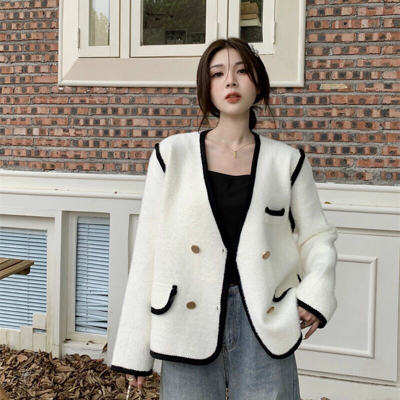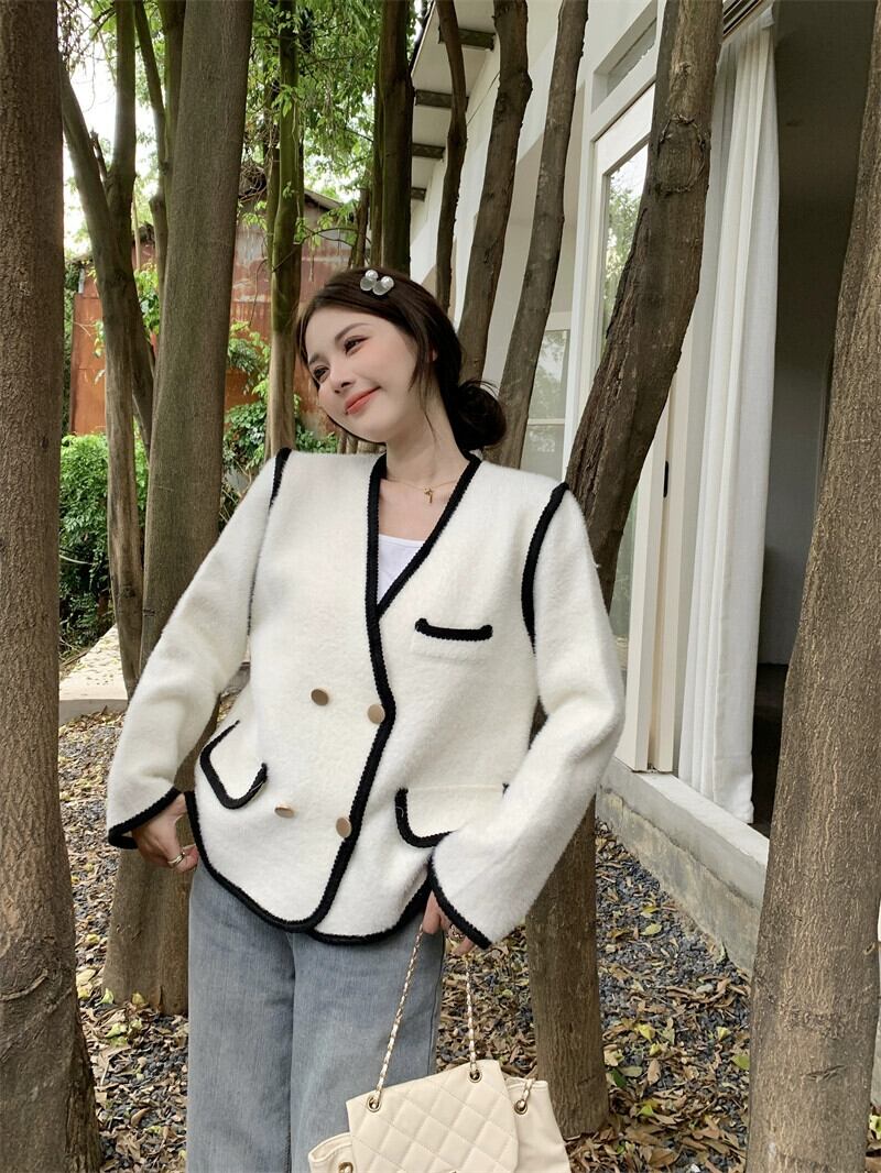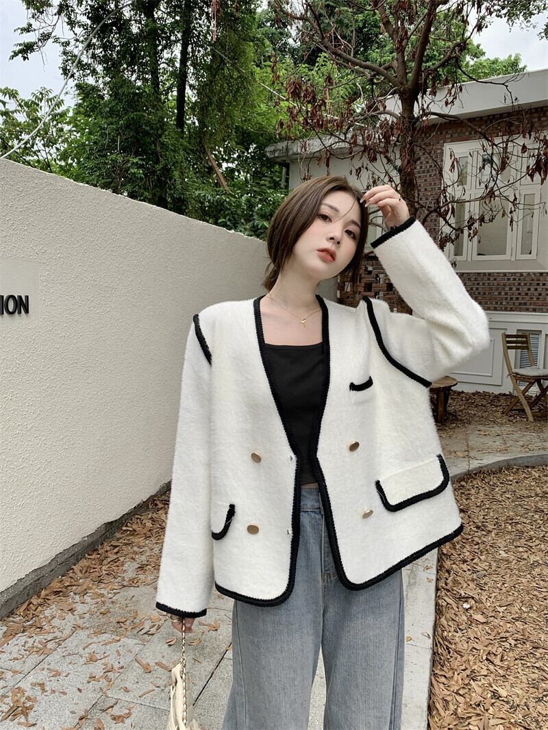 プラスサイズの婦人服ファットミリメートル 2023 新しい秋のファッション肥厚ハイエンド気質模造ミンクベルベットダブルブレストカーディガンジャケット 大きめサイズ オータム 秋物 8884155867346235