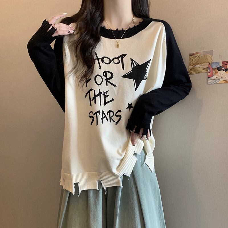 プラスサイズの婦人服ファット mm 秋の新スタイル 2023 怠惰なスタイルの隠れた肉と痩身セーターハイエンドのニッチシックなトップ 大きめサイズ オータム 秋物 8884122585132236