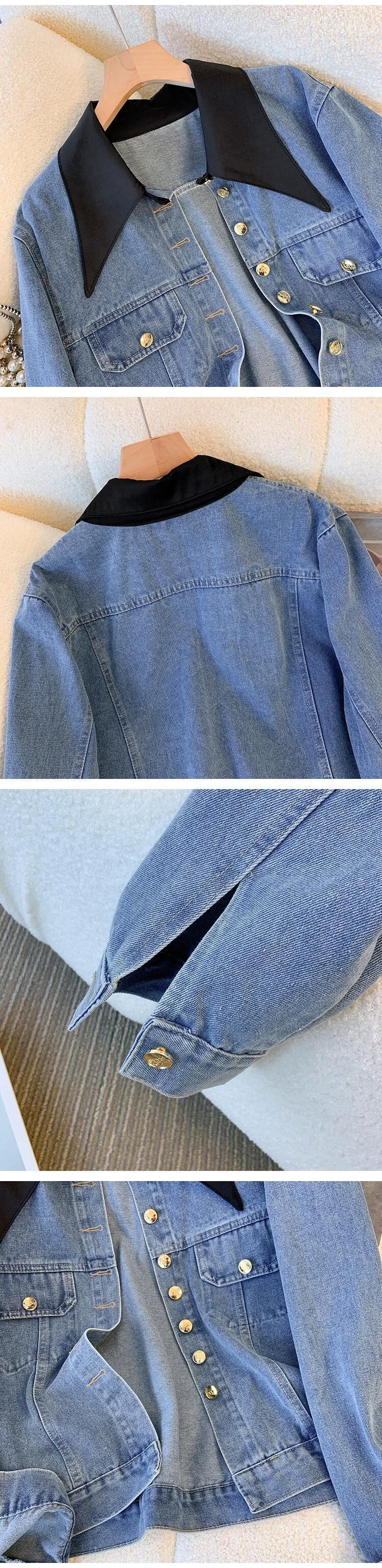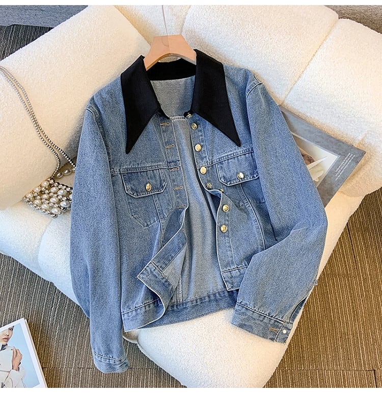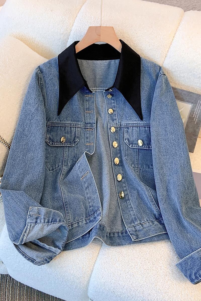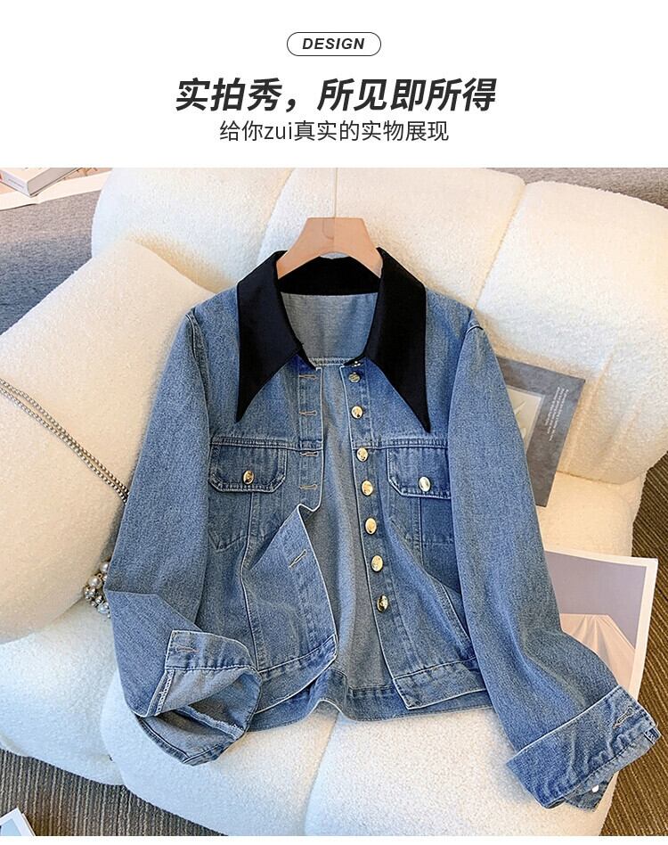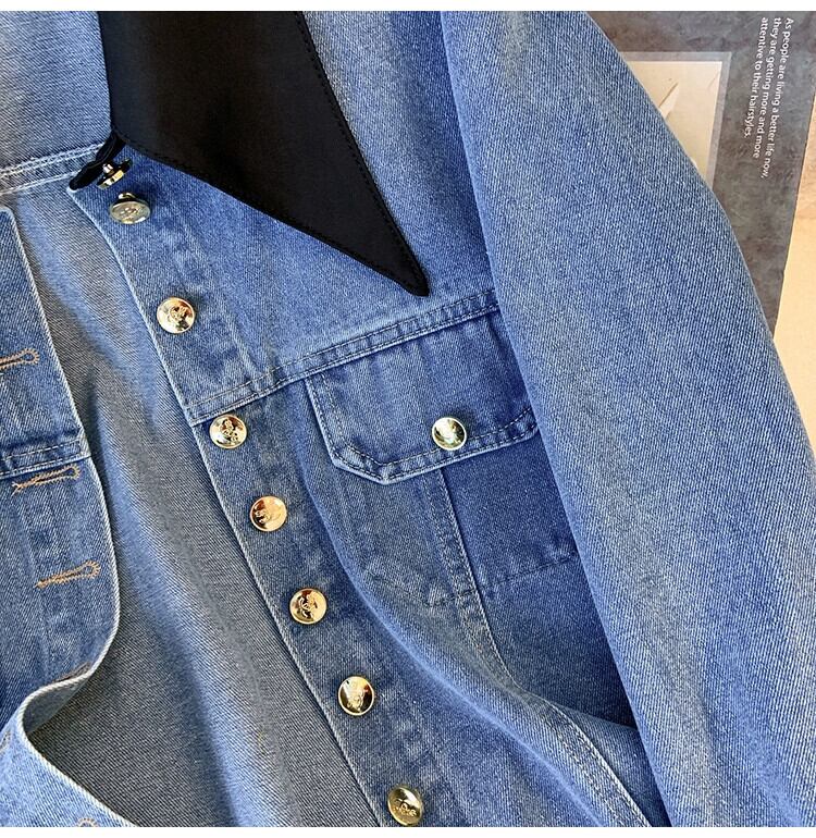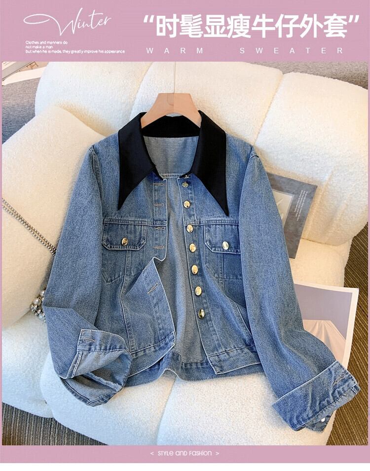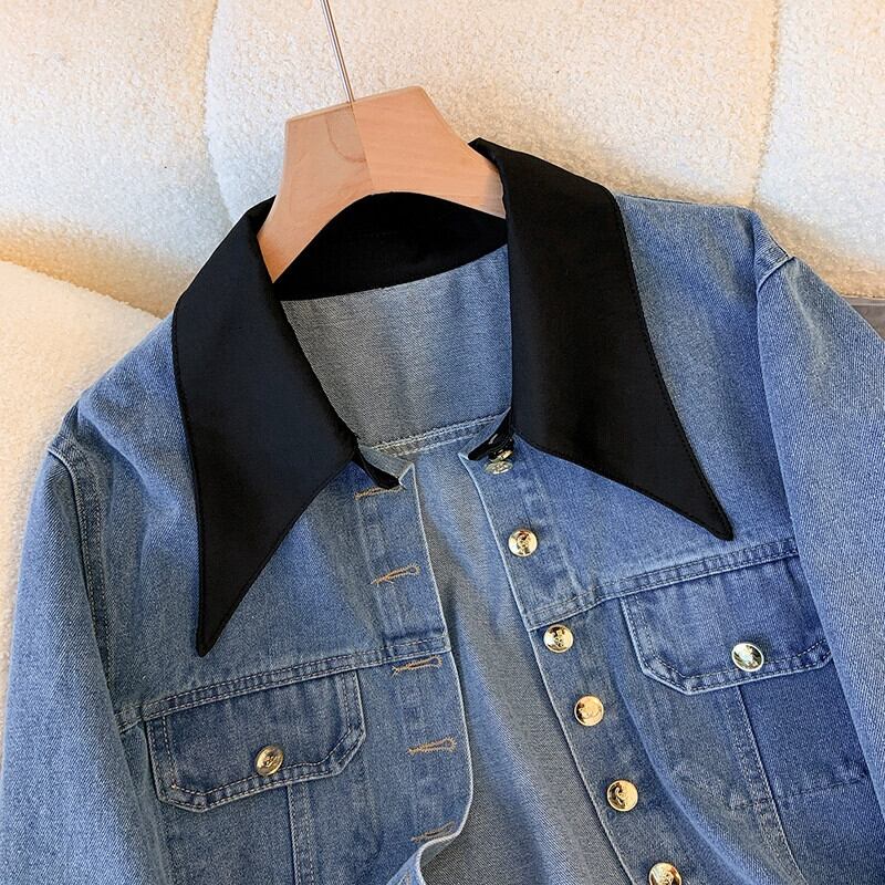 プラスサイズの婦人服 2023 秋服脂肪ニッチレトロスプライシング偽ツーピースデニムジャケットルーズカーディガントップ 大きめサイズ オータム 秋物 8884112259721090