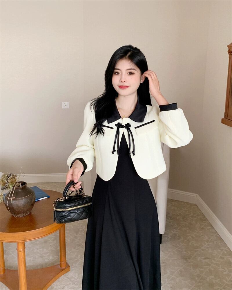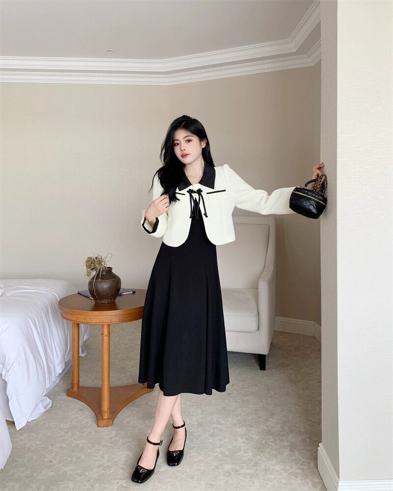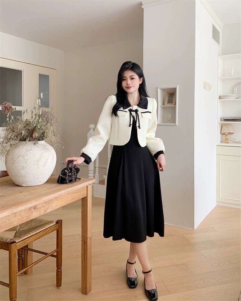 色:白いコート,黒いドレス