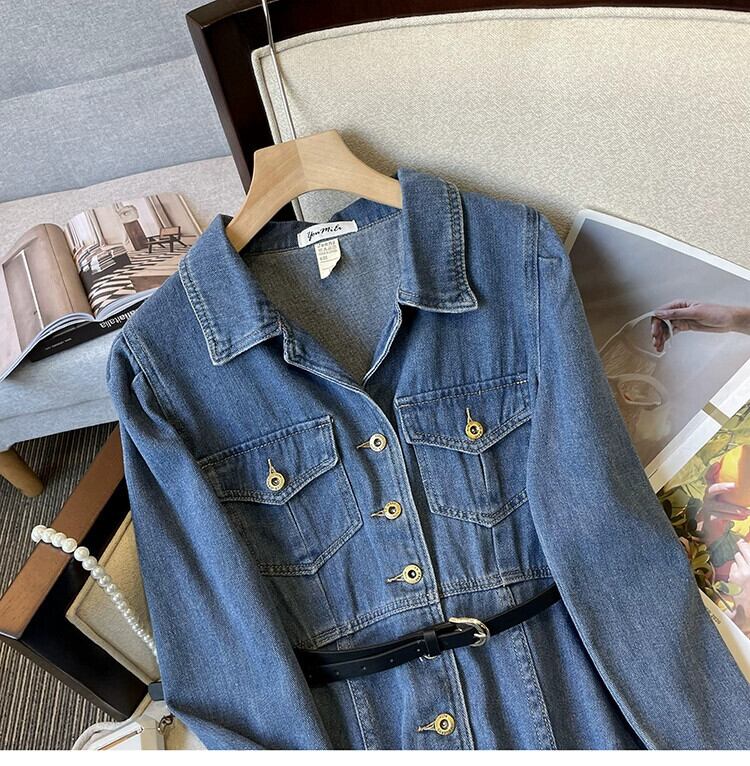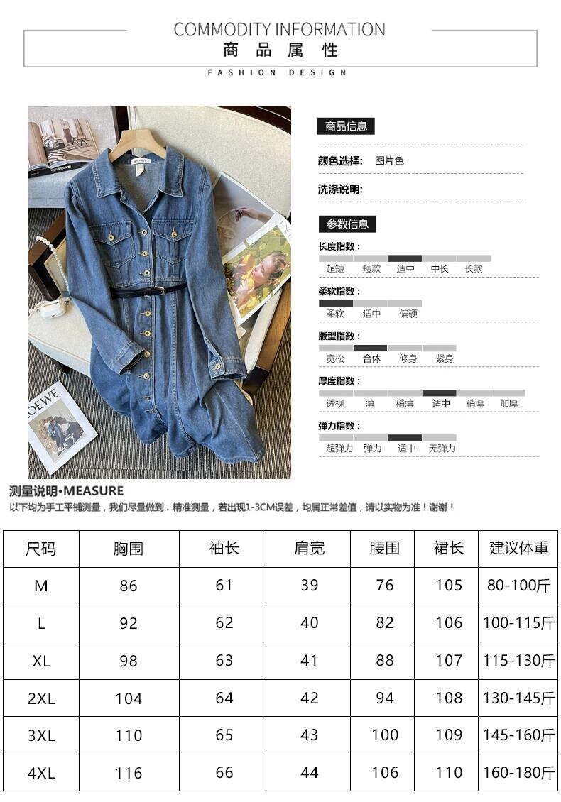 プラスサイズの婦人服脂肪初秋 2023 新しいスタイル痩身ドレス年齢軽減デニムハイエンドウエストロングスカート 大きめサイズ オータム 秋物 8884134485906124