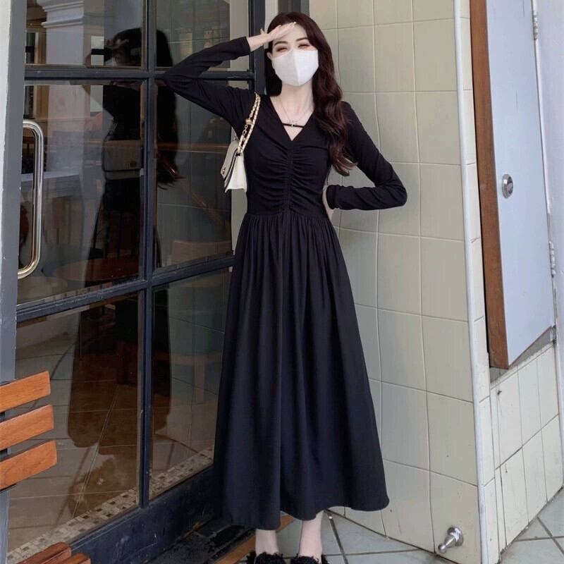 プラスサイズの女性の脂肪 MM 初秋 2023 新しいレトロなヘップバーンスタイルのドレス気質痩身ウエストリトルブラックスカート 大きめサイズ オータム 秋物 8884116734751453