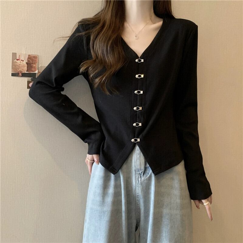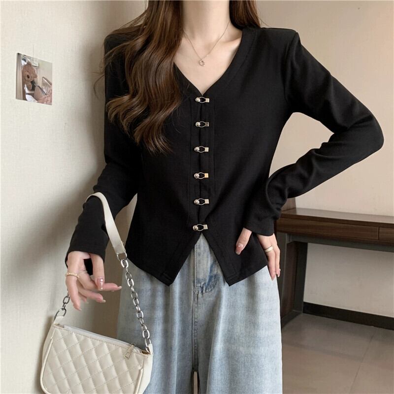 プラスサイズの婦人服ファット mm 秋の新スタイル 2023 多彩なデザイン気質 V ネックインナー Tシャツ無地年齢を減らすトップス 大きめサイズ オータム 秋物 Vネック ソリッドカラー 888415546716106