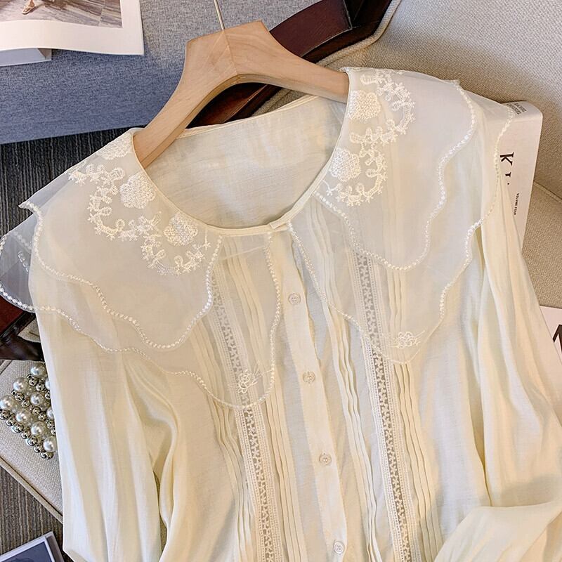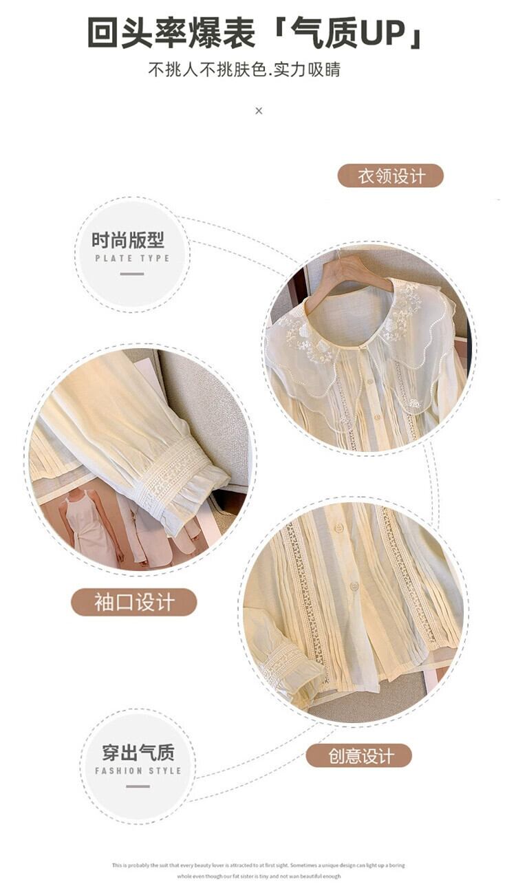 プラスサイズの女性の脂肪 mm 秋フランス年齢軽減痩身腹カバー高耐久刺繍人形襟シャツ甘いトップ レッド 大きめサイズ 大人ガーリー スウィート キュート カジュアル オータム 秋物 8884184197763044