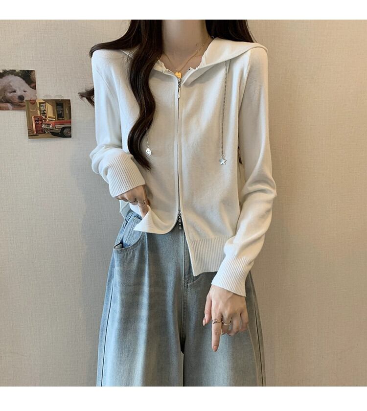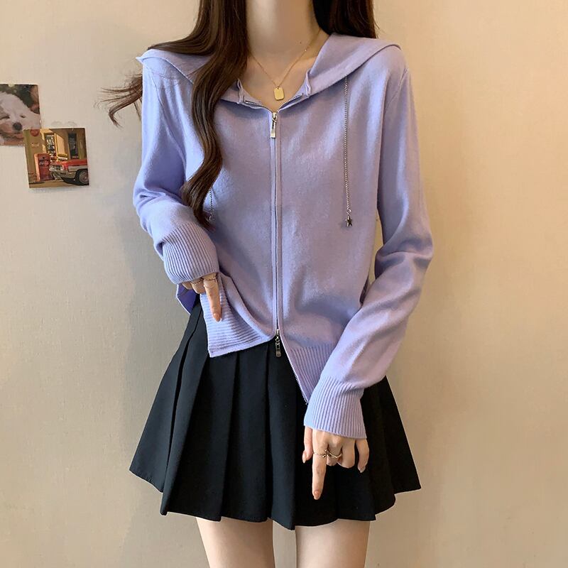 プラスサイズの女性の脂肪 mm 秋の新スタイル 2023 ニッチ気質フード付きセータージッパーカーディガンデザイントップ 大きめサイズ オータム 秋物 8884141579644234