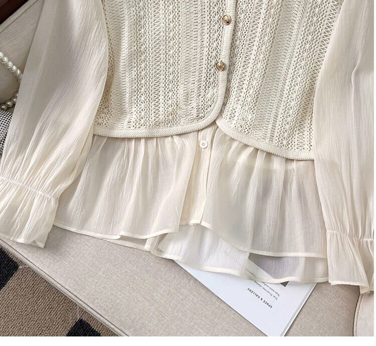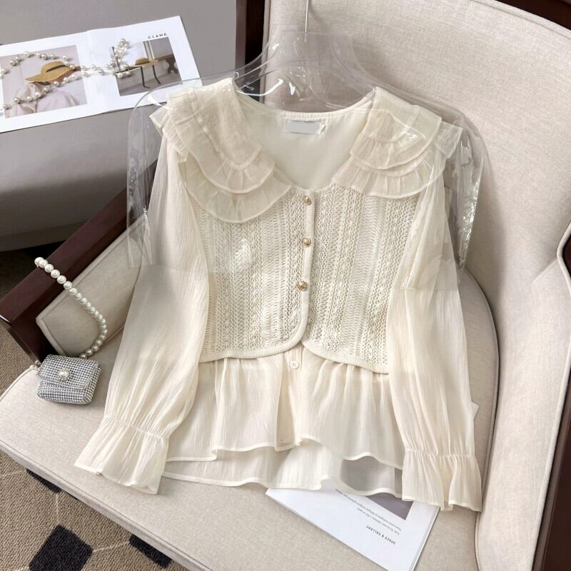 大きいサイズの新しい秋の二重層ドールカラートップ女性ファットMMレトロスタイル多用途フェイクツーピース長袖シャツトレンディ ロング 大きめサイズ オータム 秋物 8884173368744174