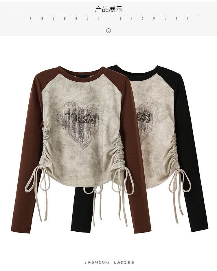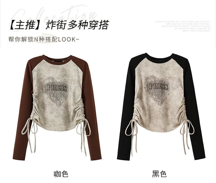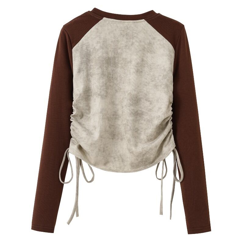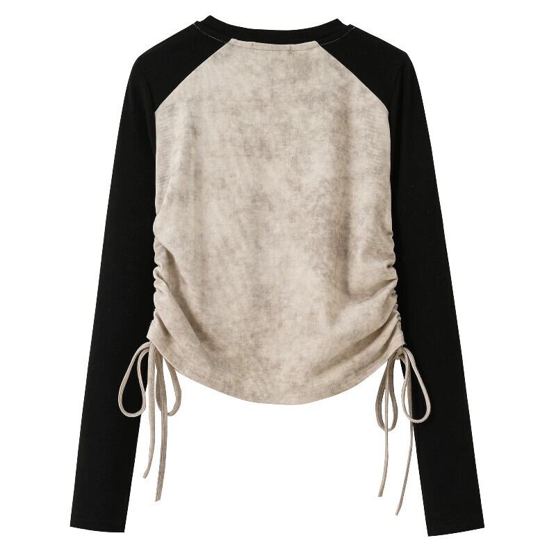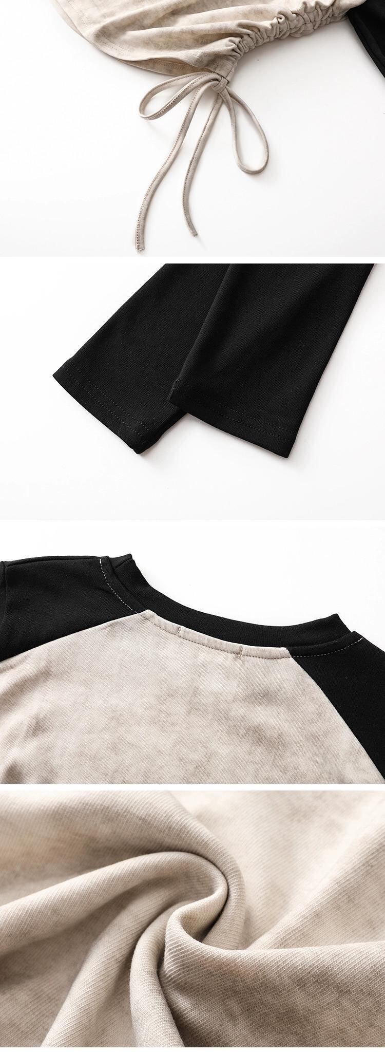 プラスサイズの婦人服脂肪mm 2023新しい秋のスタイルの気質長袖デザインセンスカラーマッチングラウンドネックプルオーバー巾着トップ ロング 大きめサイズ オータム 秋物 Oネック 8884133919902214