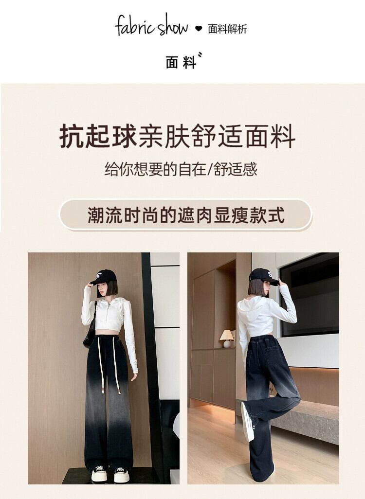 プラスサイズの女性の秋の新スタイル 2023 ハイウエストグラデーションジーンズファットミリメートルドローストリング弾性ウエストルーズワイドレッグパンツ ハイウェスト エラスティック 伸縮 大きめサイズ オータム 秋物 ワイドパンツ 8884166758368463
