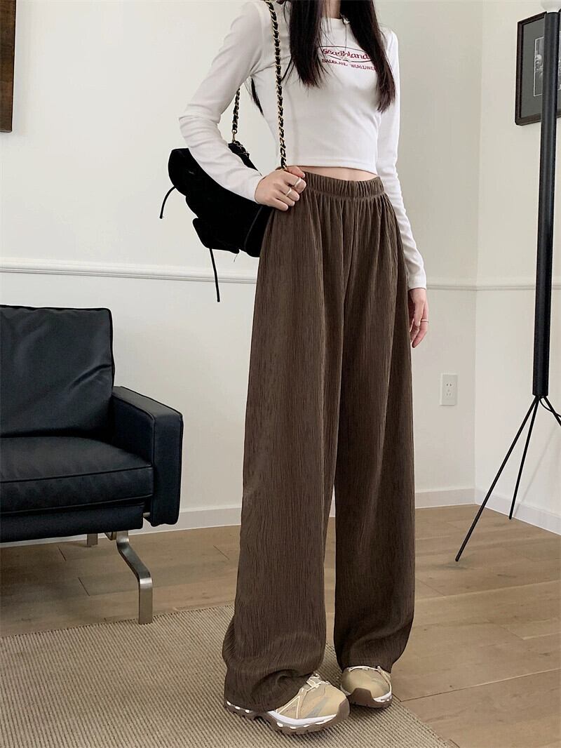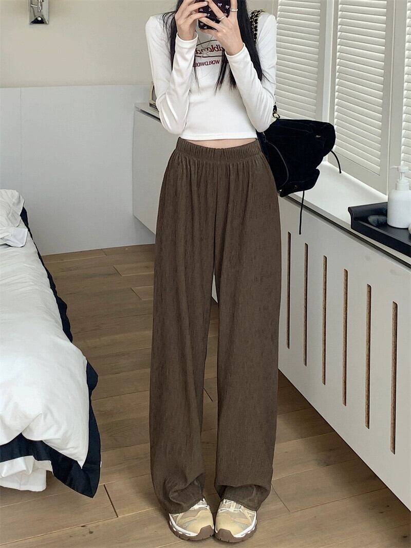 プラスサイズの女性の脂肪 mm 新しいファッションシンプルなカジュアルパンツ 2032 秋多用途気質ワイドレッグパンツ 大きめサイズ オータム 秋物 8884164334998714