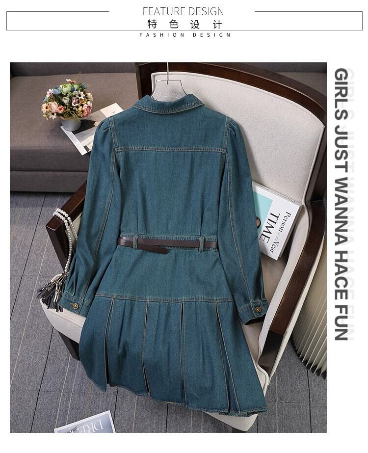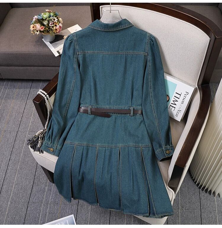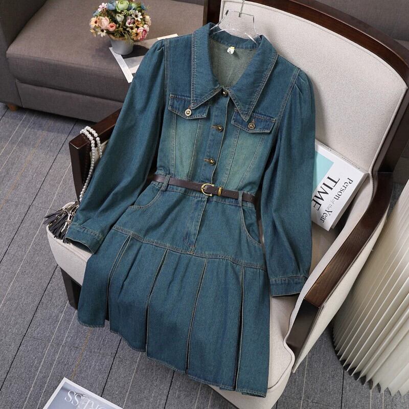 プラスサイズの婦人服ファットミリメートル 2023 新しい秋スタイルフレンチデザインニッチロングスカートアインスタイルデニムオールマッチドレス 大きめサイズ オータム 秋物 8884153622598096