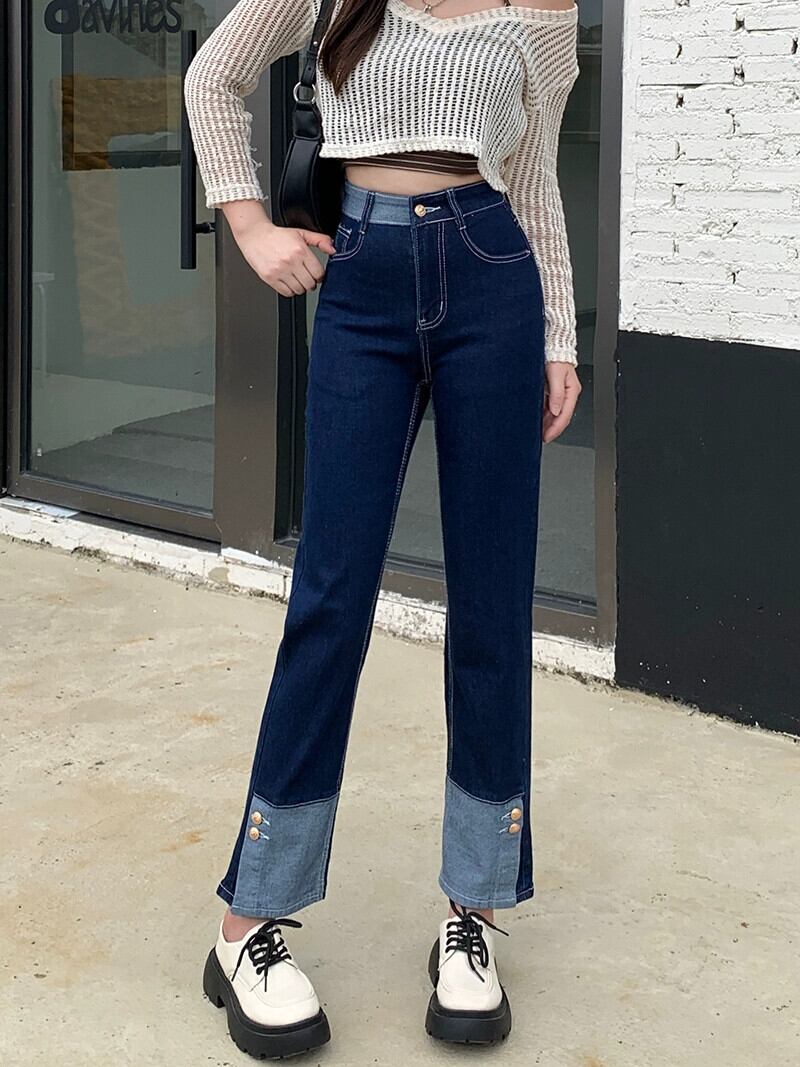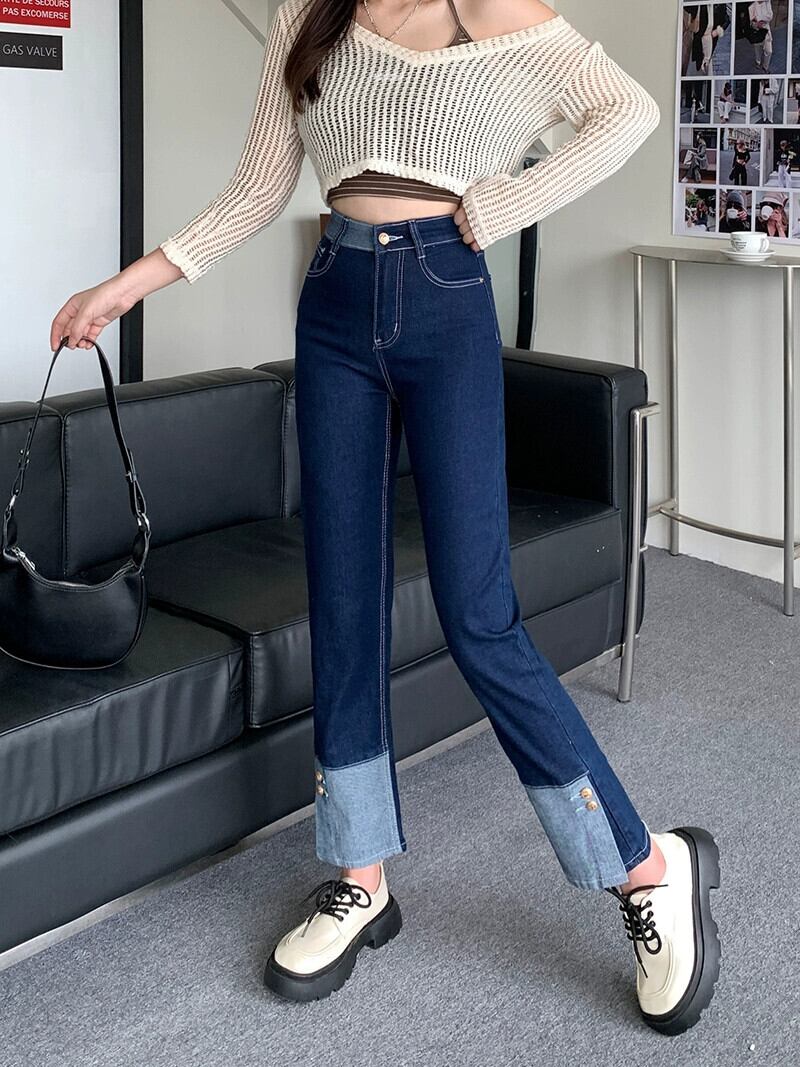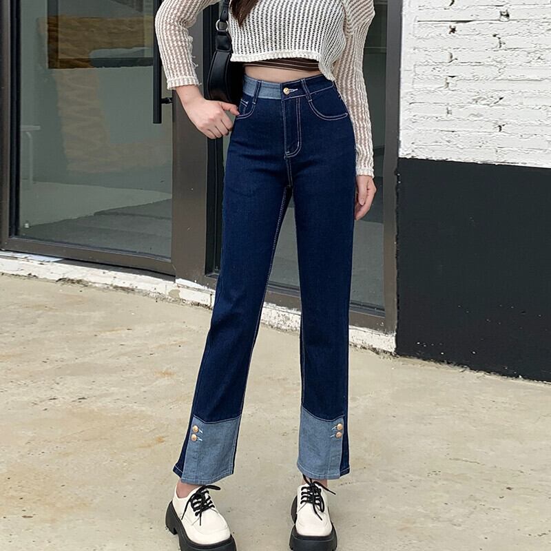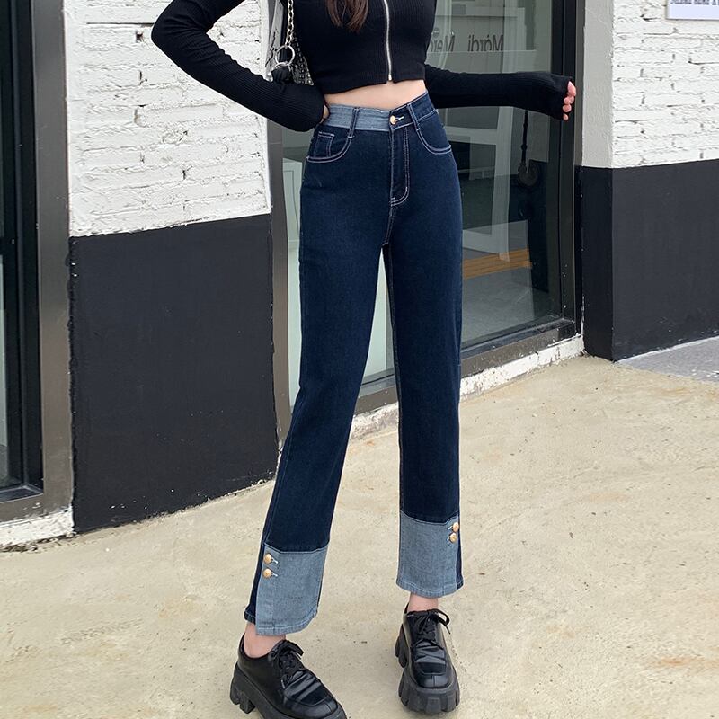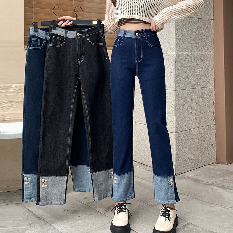 プラスサイズの秋の新しいソリッドカラースタイルのストレートパンツ太った女性、ファッショナブルで多用途なハイウエストスリムジーンズ 大きめサイズ オータム 秋物 8884133933473865