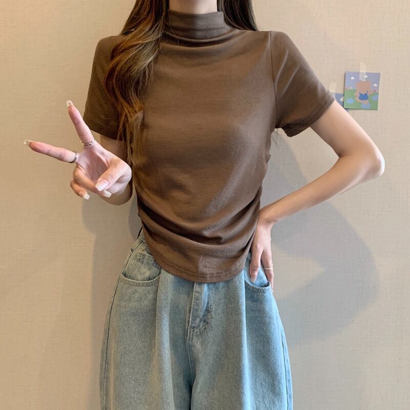プラスサイズの婦人服ファット mm 2023 新しい秋スタイルファッショナブルなハイエンドセミハイカラー新しいインナー巾着トップボトリングシャツ 大きめサイズ オータム 秋物 8884196656566098
