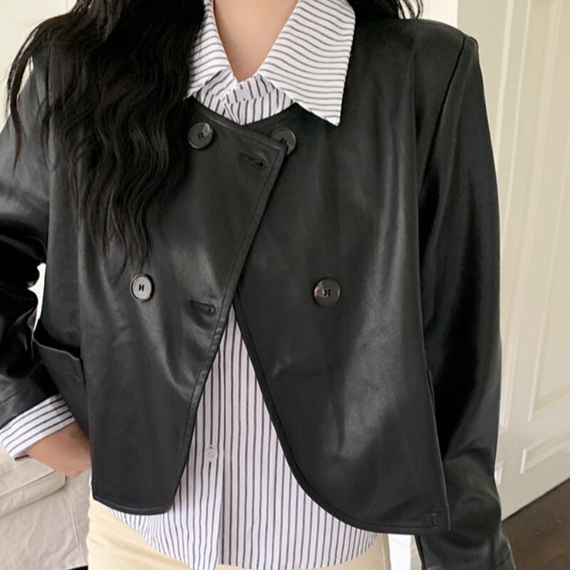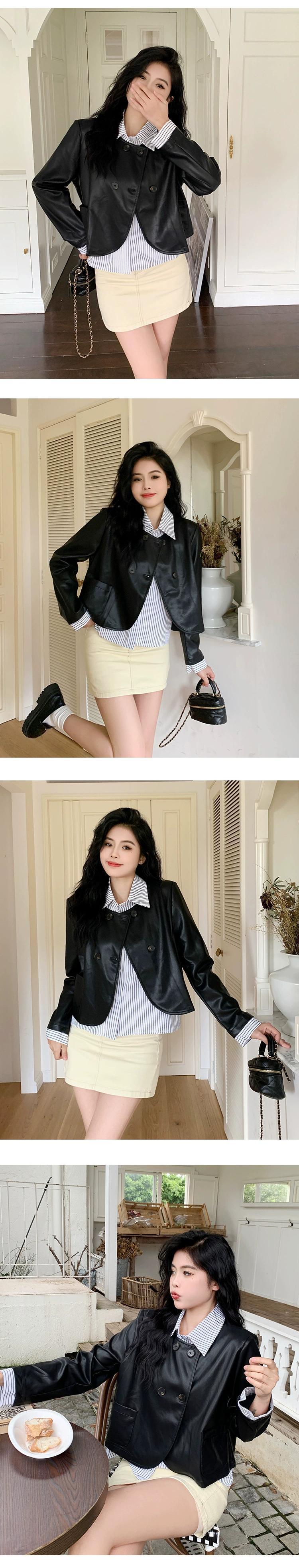 プラスサイズの婦人服ファットミリメートル 2023 新しい秋デザイン偽ツーピーススプライシングトップカジュアルルーズレザージャケット 大きめサイズ オータム 秋物 8884199130303138
