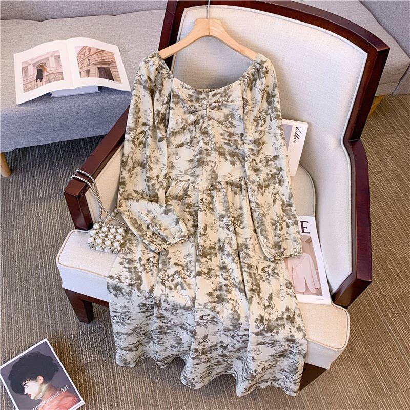 プラスサイズの婦人服脂肪 mm 2023 新しい秋スタイルフランスのハイエンドの絶妙な花柄スカートハイエンド年齢を減らすドレストレンド 大きめサイズ オータム 秋物 8884138202445400