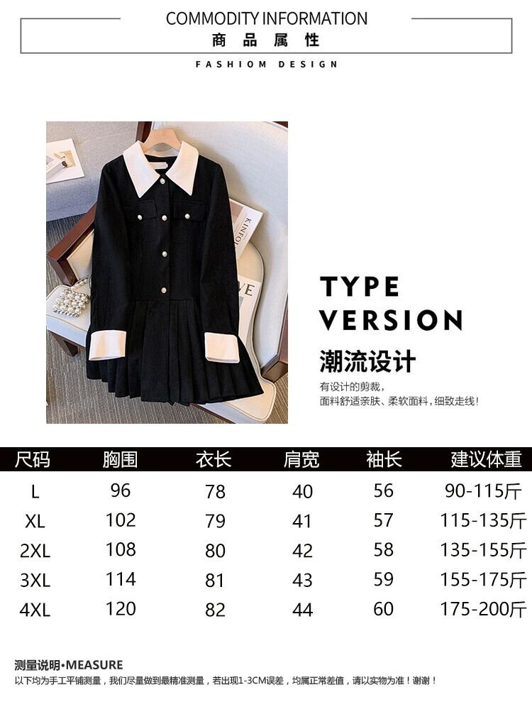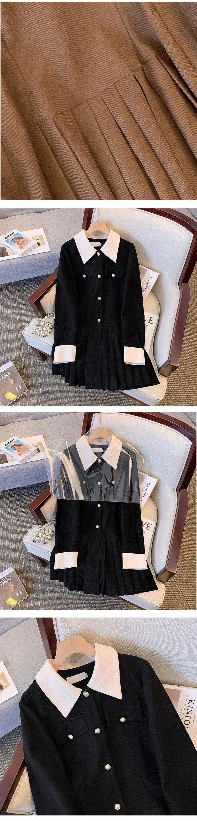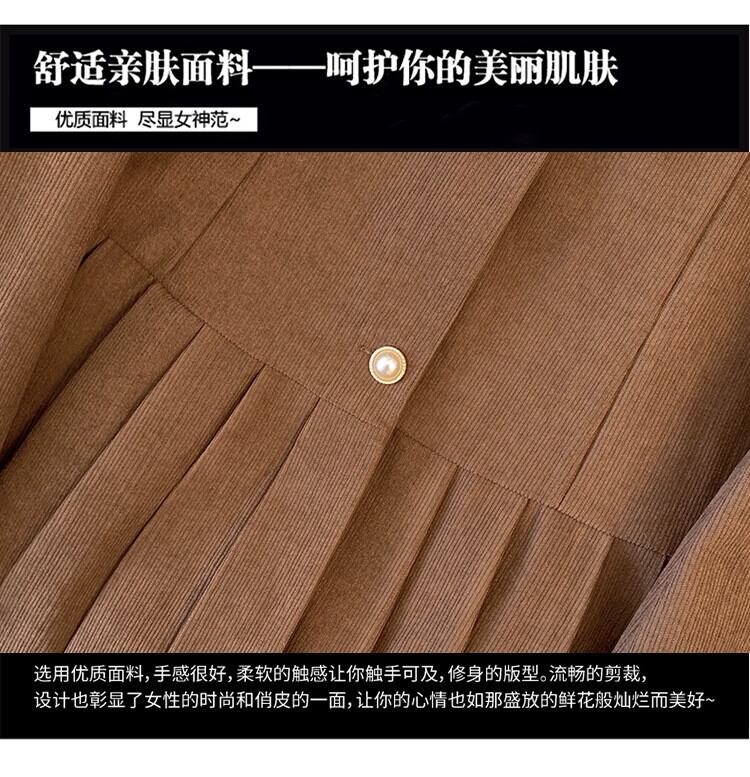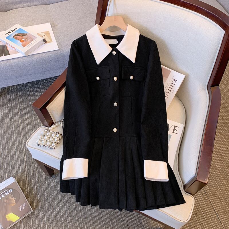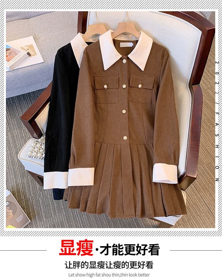 プラスサイズの婦人服脂肪 mm 秋の新スタイル 2023 eign スタイルレトロな年齢を軽減コントラストカラーステッチコーデュロイプリーツドレス 大きめサイズ オータム 秋物 888412433715810