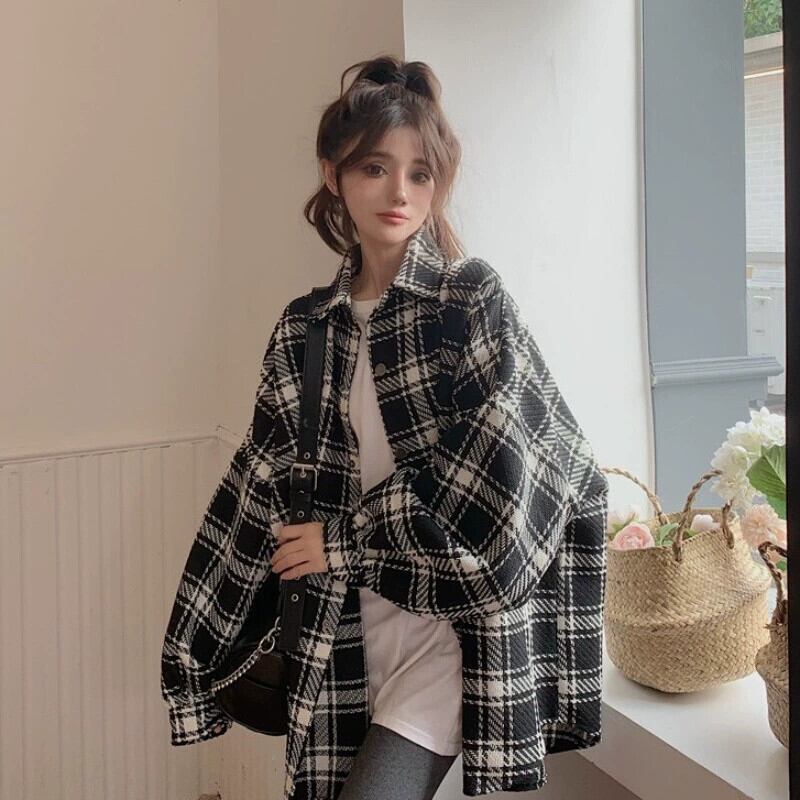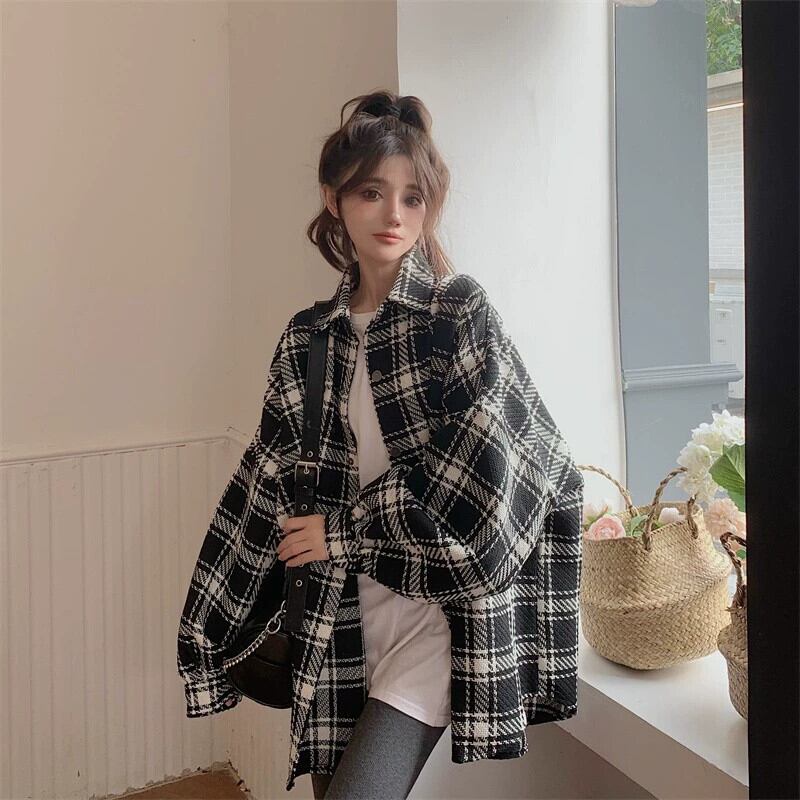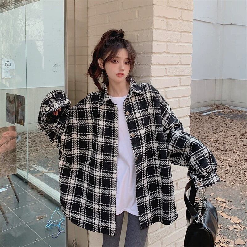 プラスサイズの脂肪ミリメートル新しいファッションチェック柄シャツ肥厚コート秋の女性のゆるい怠惰なスタイルのミッドレングスシャツ 大きめサイズ オータム 秋物 8884118556065331