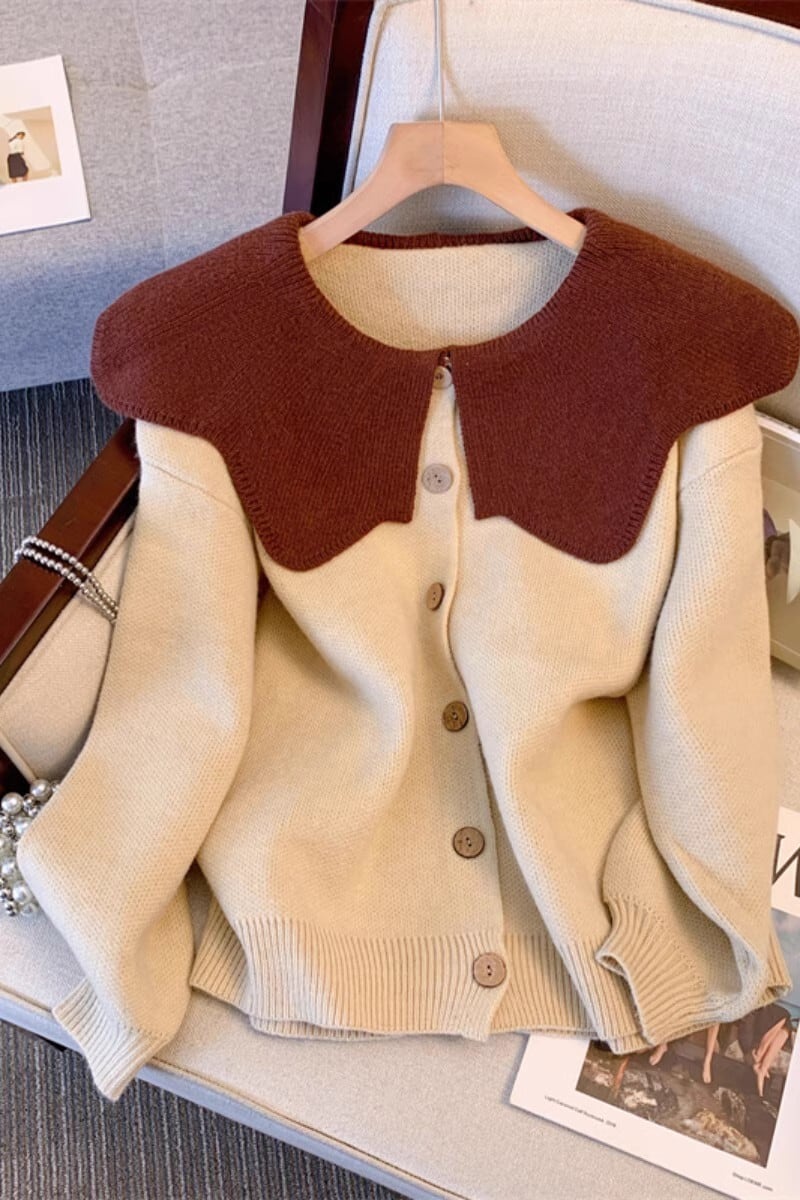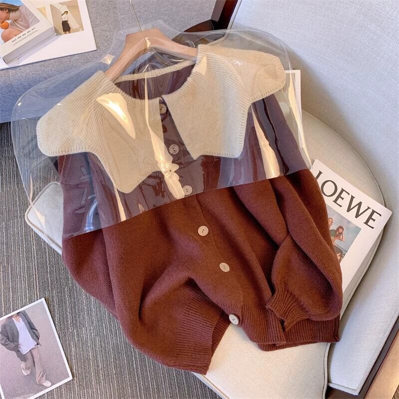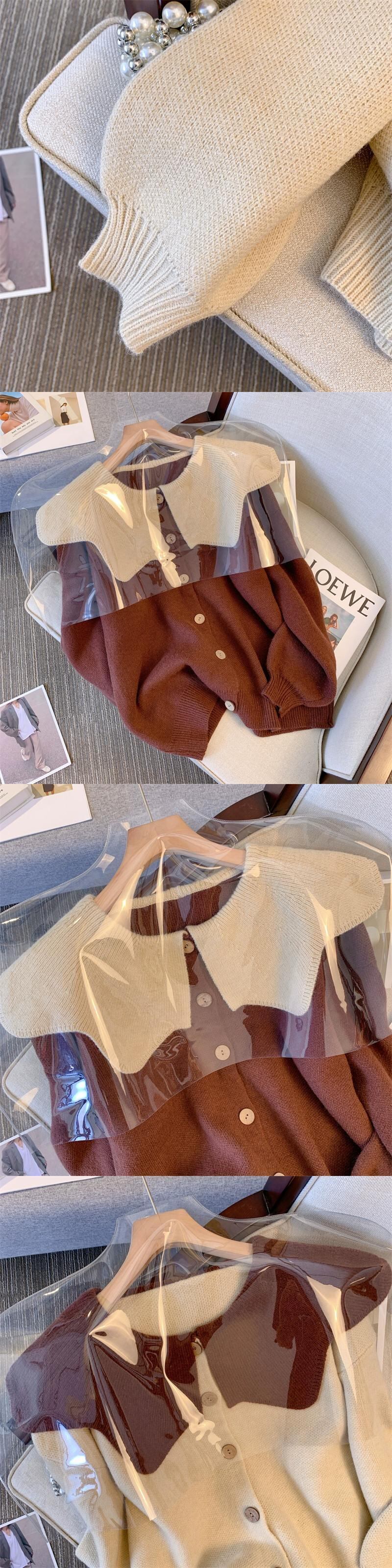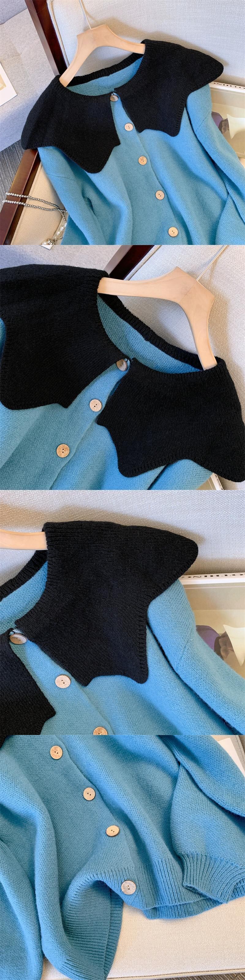 プラスサイズの婦人服ファットミリメートル秋 2023 新ファッションラウンドネックステッチ対照的な色痩身セーターカーディガンセーター 大きめサイズ オータム 秋物 Oネック 8884182403444573