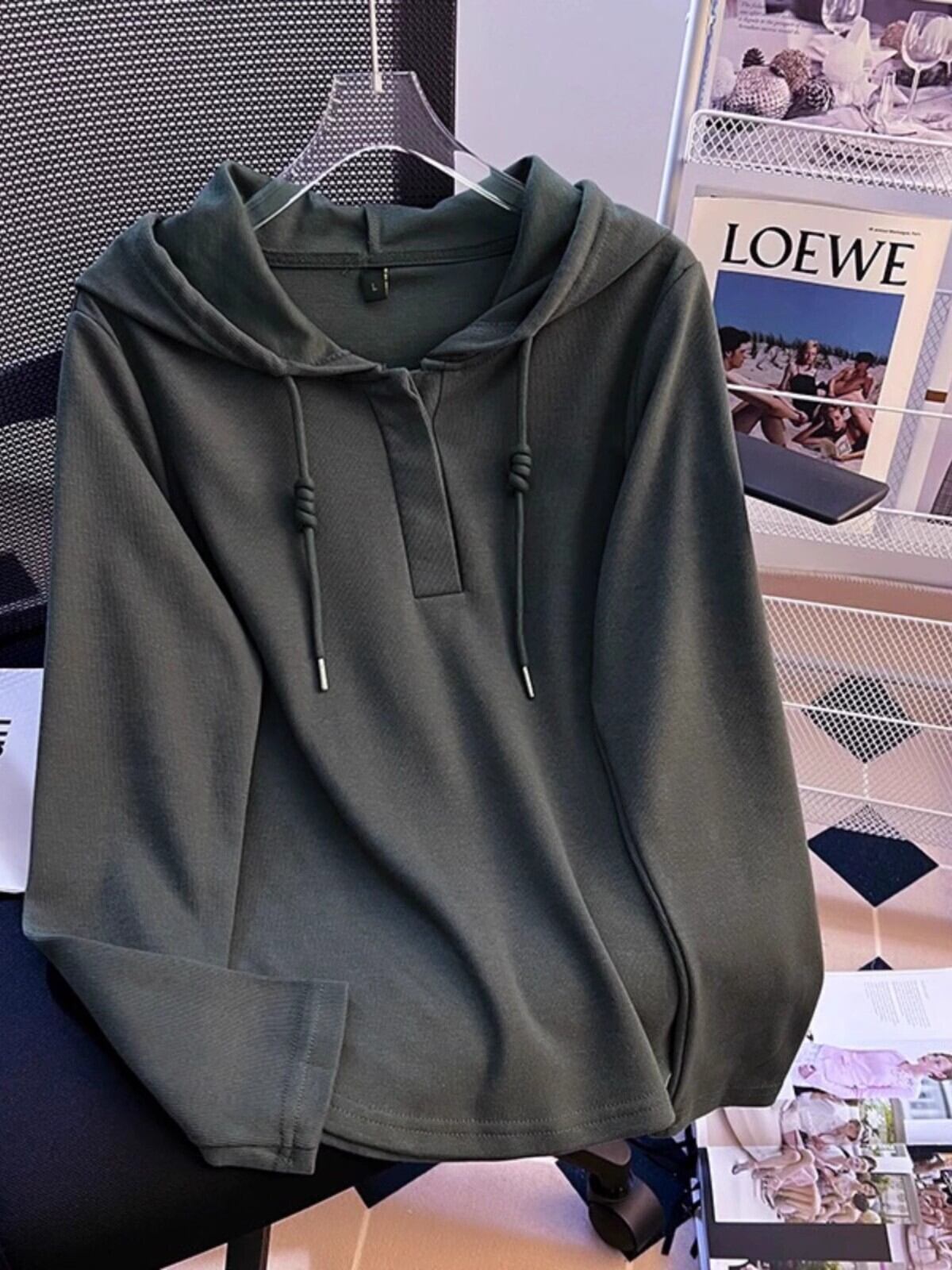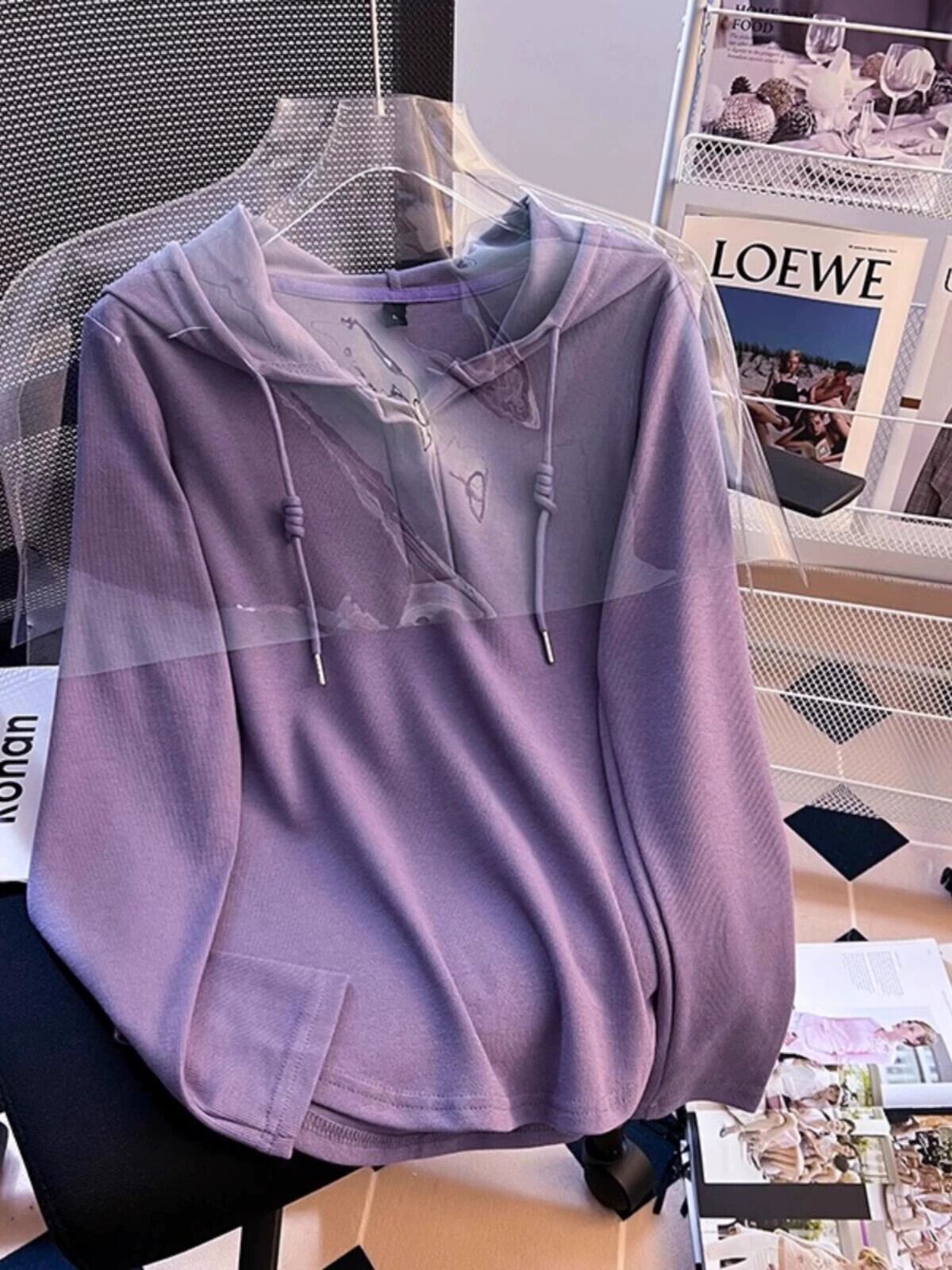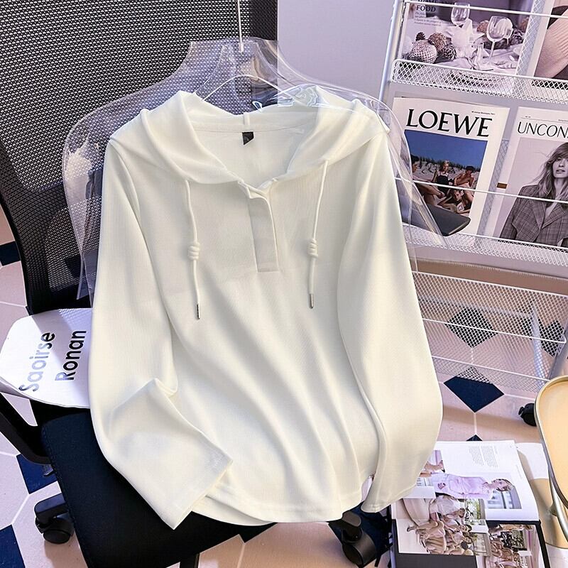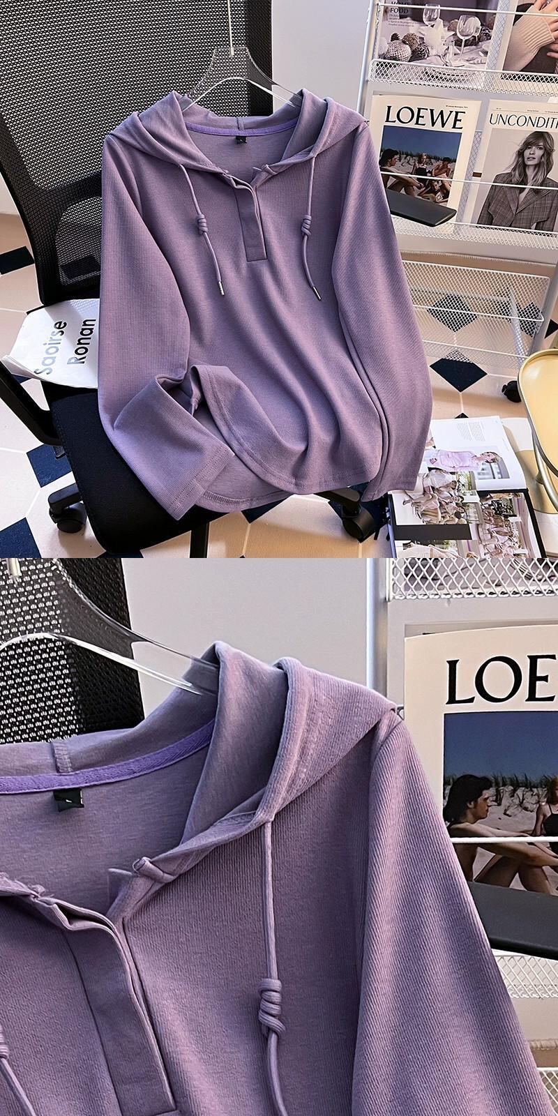 大きいサイズ秋無地フード付き長袖シャツ Tシャツトレーナー脂肪 mm 女性ファッション緩い痩身ハイエンドトップ ロング 大きめサイズ オータム 秋物 ソリッドカラー 888412102529148