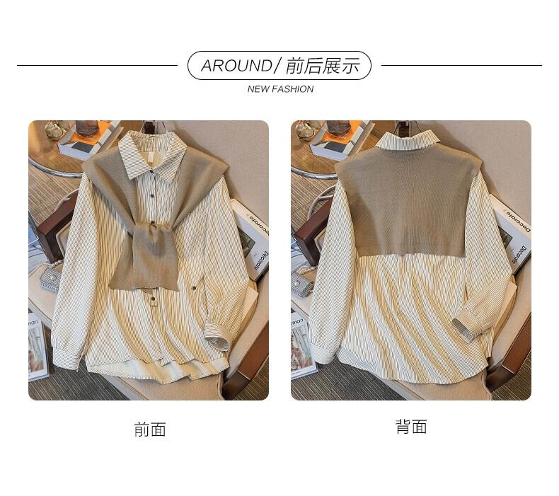 プラスサイズの婦人服ファットmm 2023新しい秋のファッションバージョン多彩な気質長袖ストライプショール長袖シャツ ロング 大きめサイズ オータム 秋物 8884167786039749