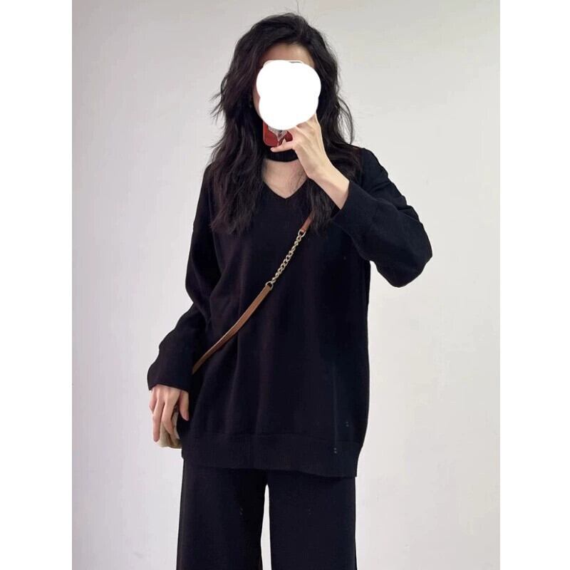 大きいサイズの秋のハイエンドのユニークでユニークなニットボトムシャツスーツセーター脂肪mm黒痩身2点セット ブラック 大きめサイズ オータム 秋物 8884165167846381