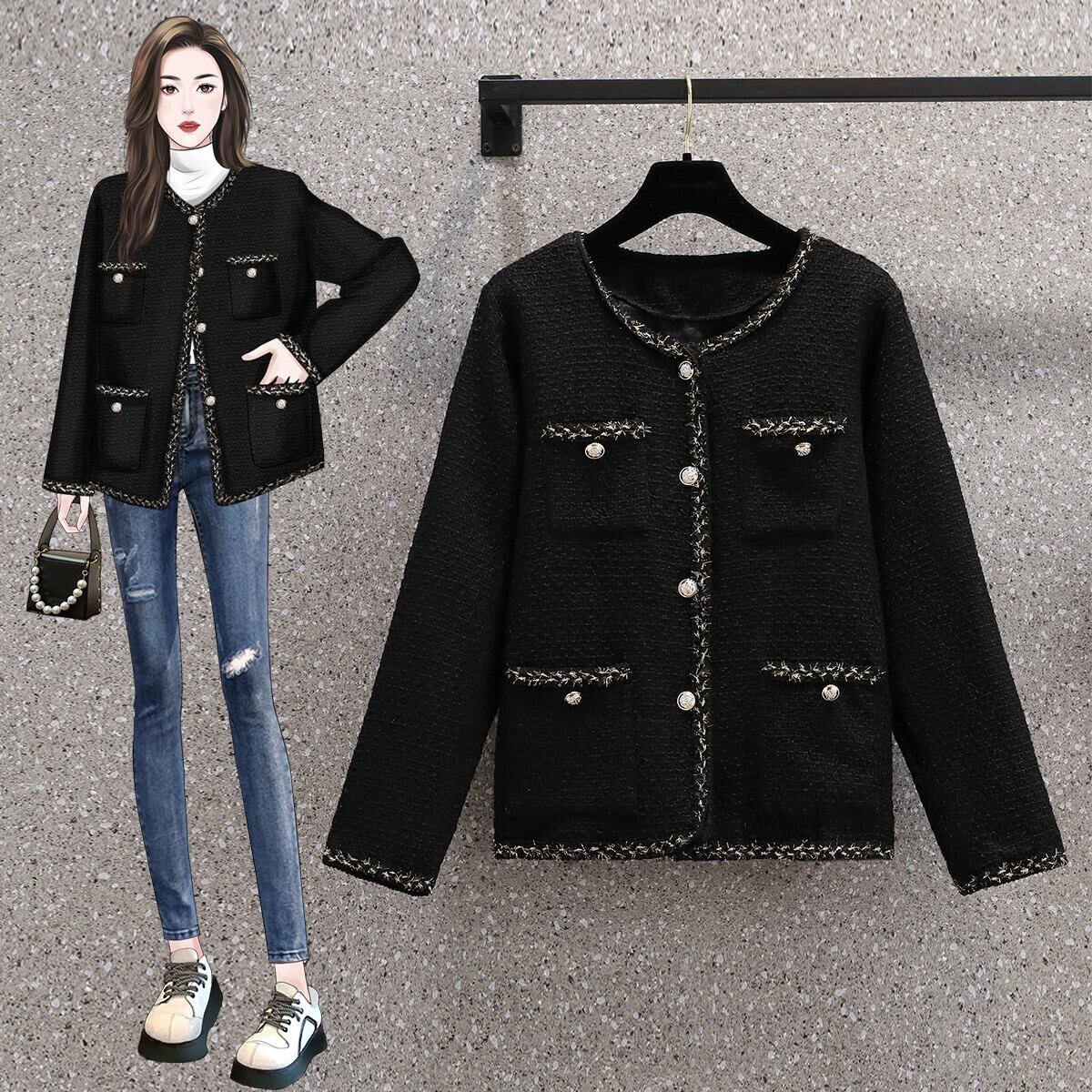 プラスサイズの婦人服ファット mm 秋の新 2023 スタイル腹カバー編組ツイード肥厚万能痩身ジャケット 大きめサイズ オータム 秋物 8884154592674357