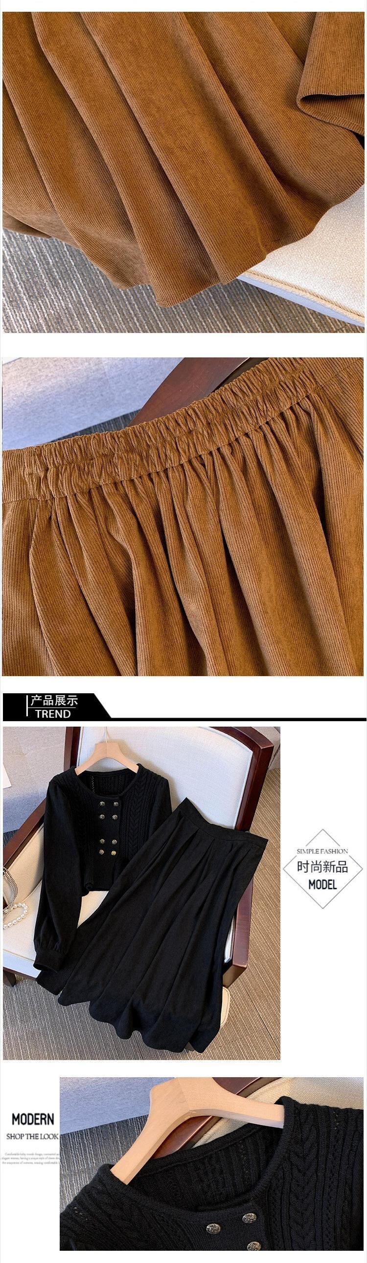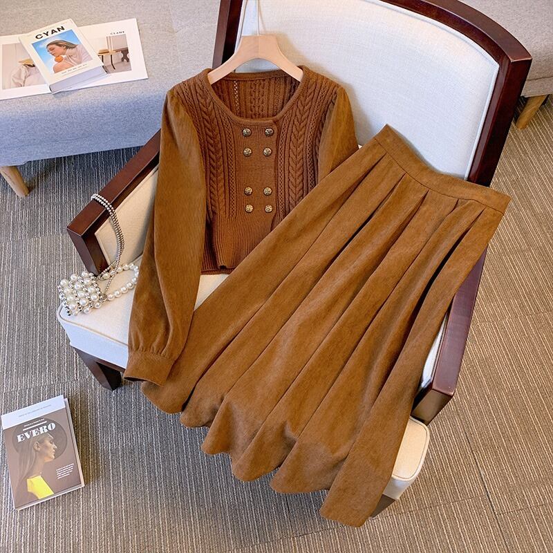 大きいサイズの秋のファッショナブルなニットセータースカートツーピースセット女性脂肪mm気質と痩身フランスの肉を覆うスーツスカート 大きめサイズ オータム 秋物 8884173647274272