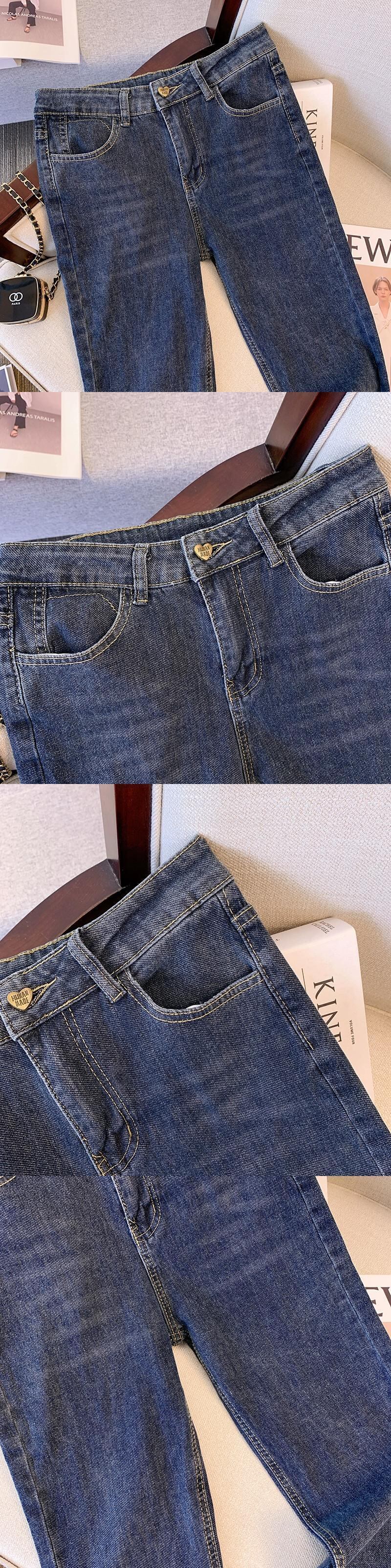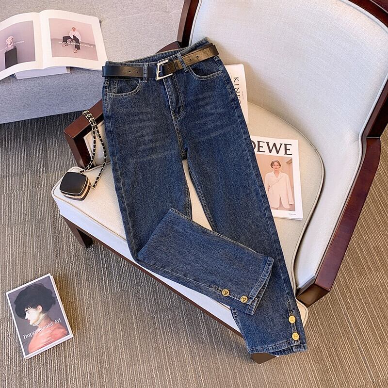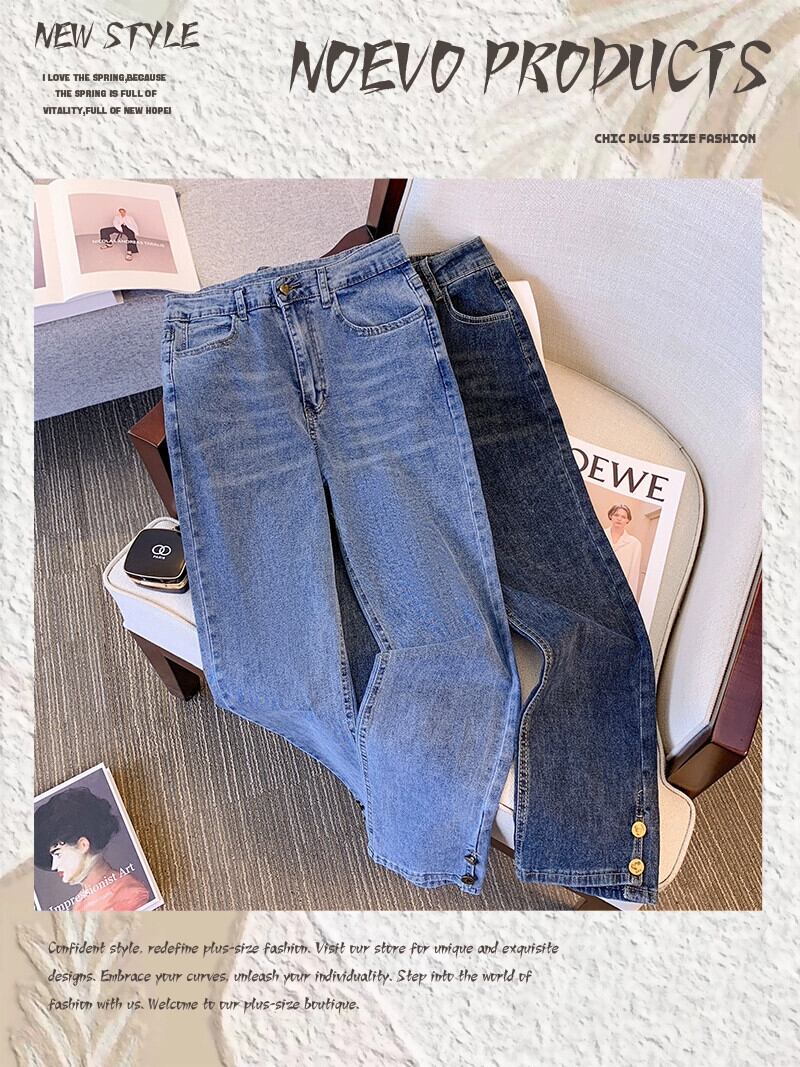 女性のパンツ大きいサイズ 2023 秋脂肪 mm ウエストスリムソリッドカラー多用途ストレートジーンズトレンディ 大きめサイズ オータム 秋物 8884190223477180