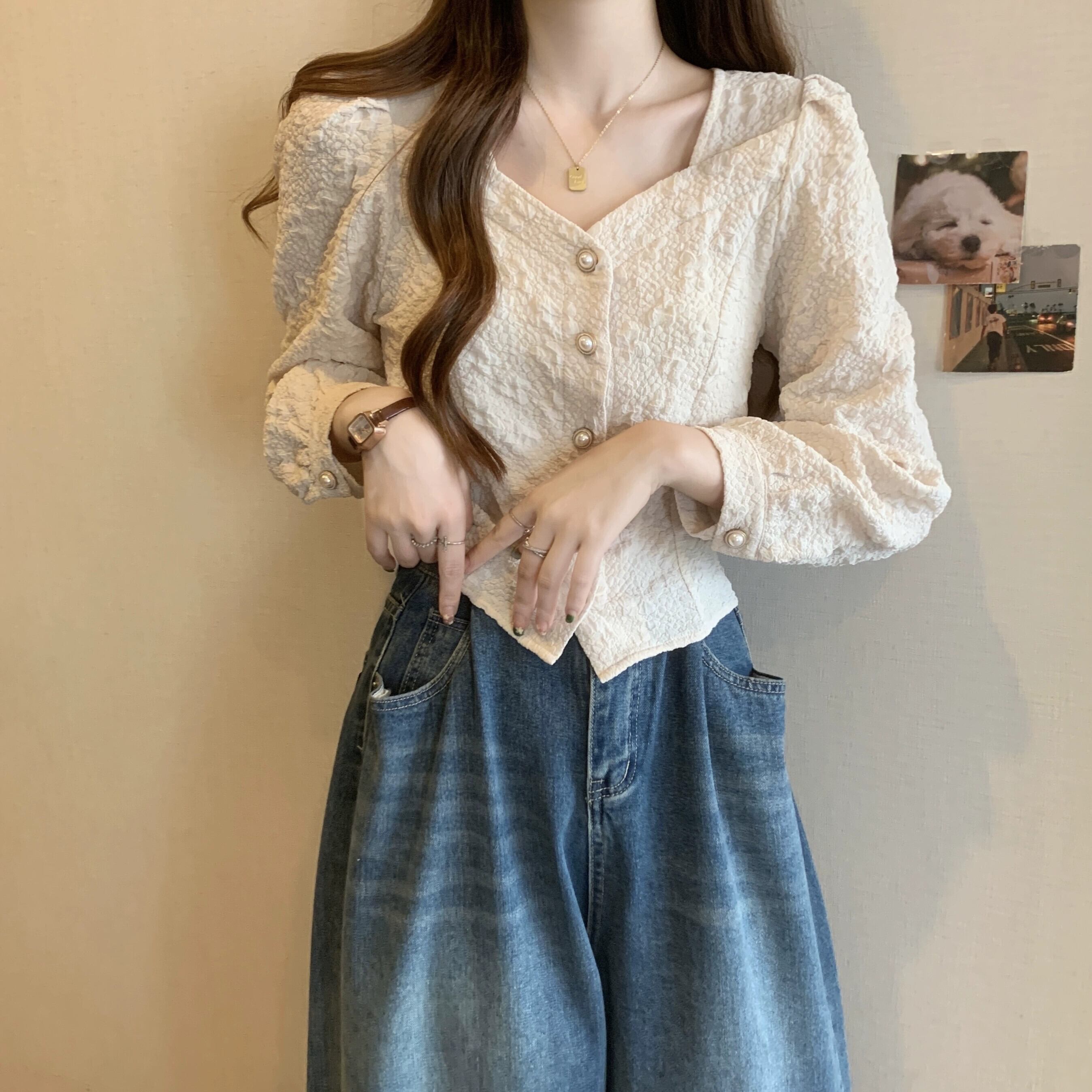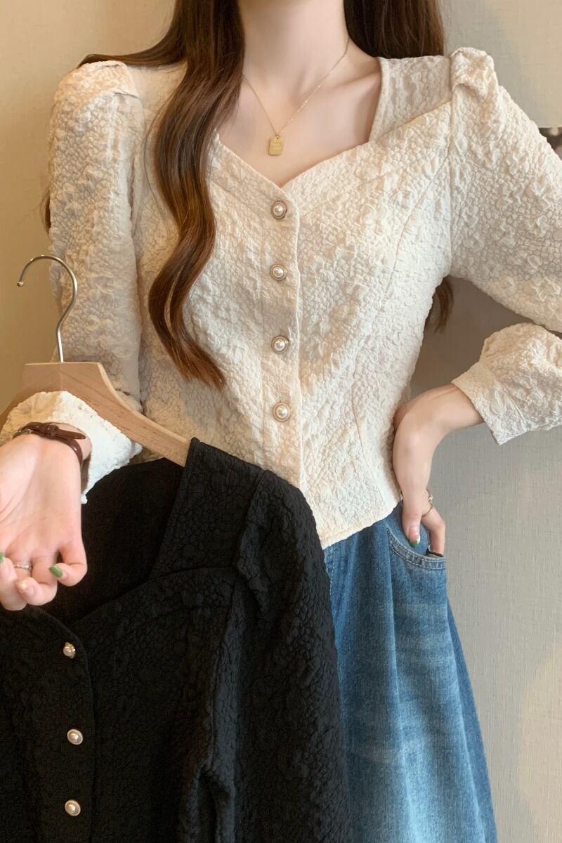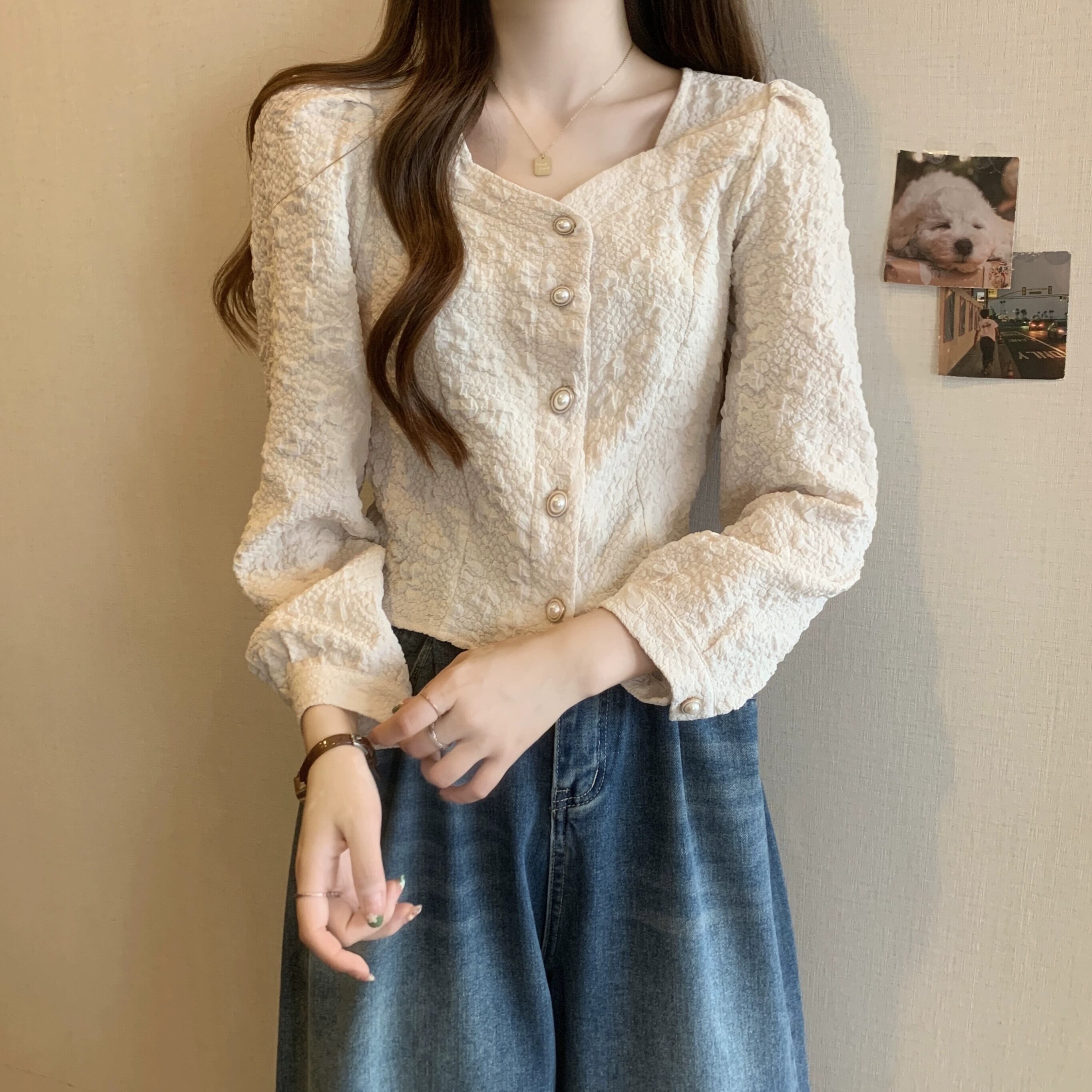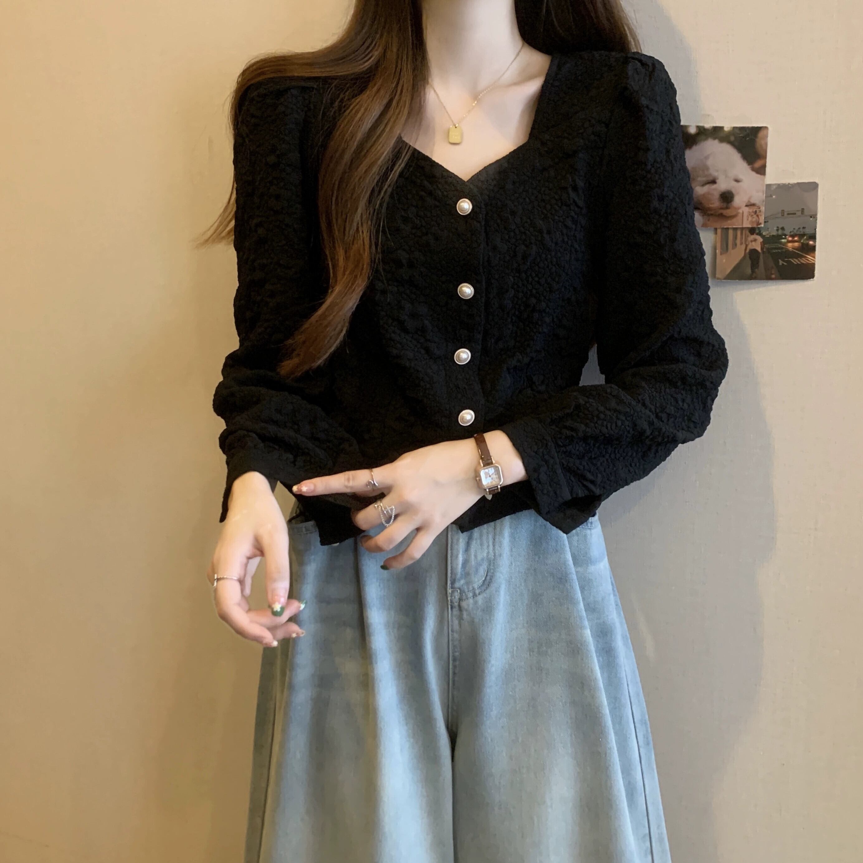 プラスサイズの女性のフランスの高級スモールフレグランス長袖シャツ秋の脂肪mmスリムシックなショートスクエアカラートップ ロング 大きめサイズ オータム 秋物 スクウェア 8884112152552734