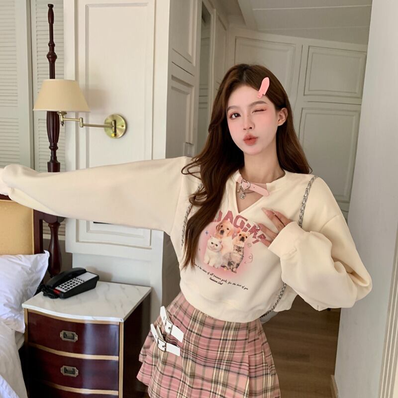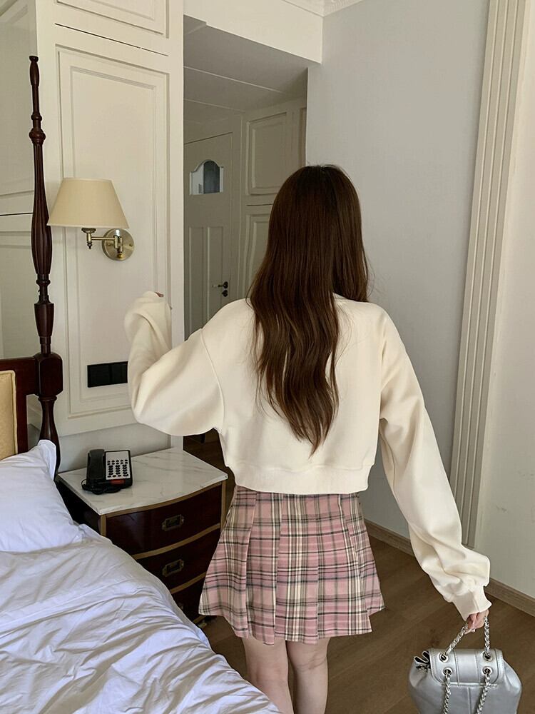 色:ロングセーター,ショートセーター,ピンクのチェック柄スカート