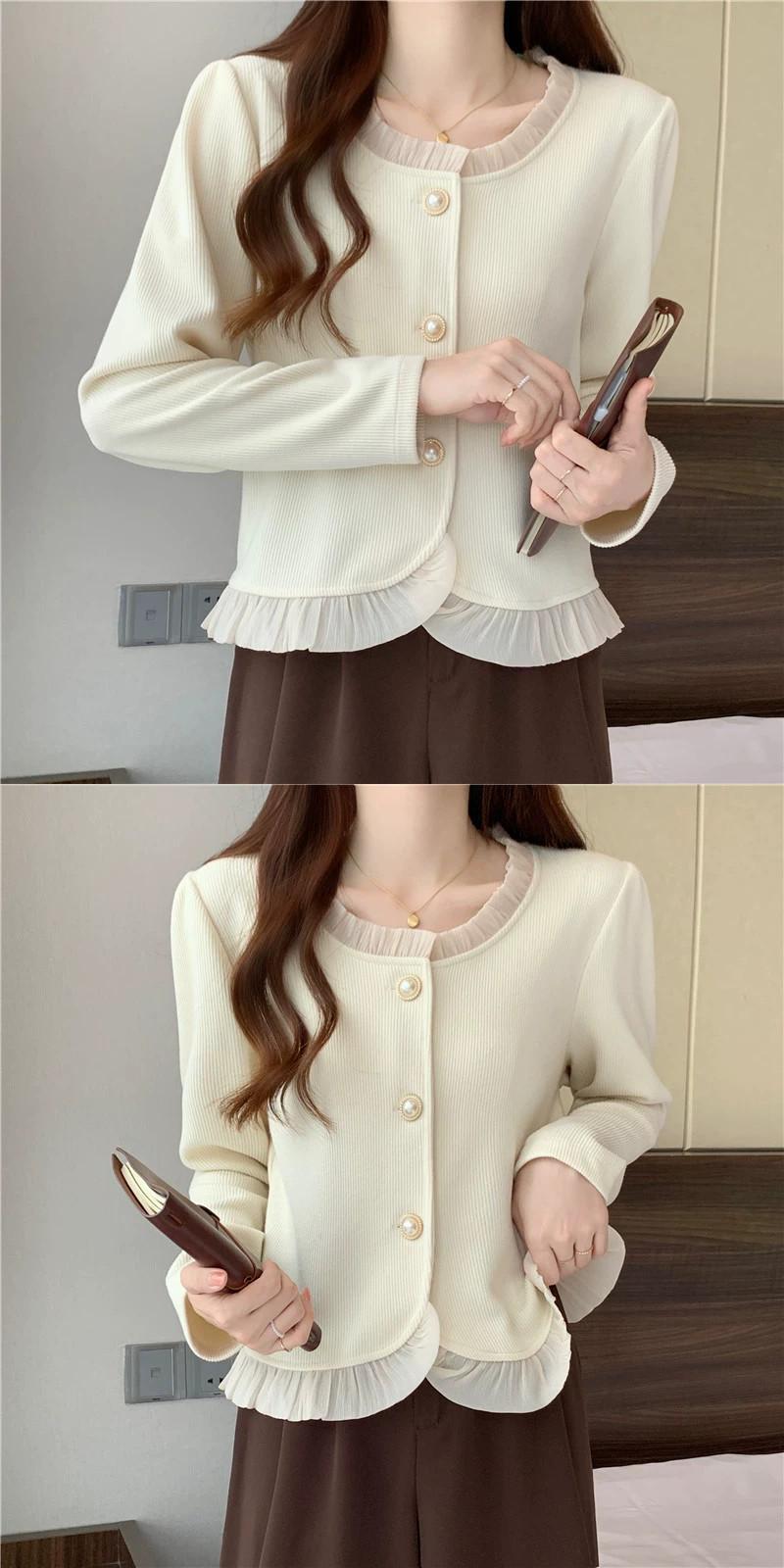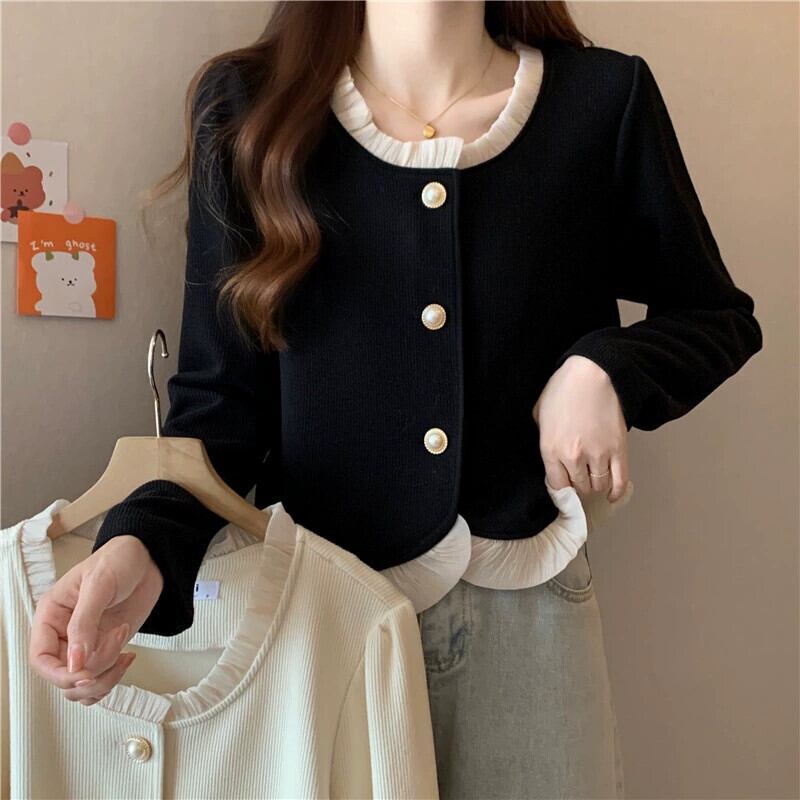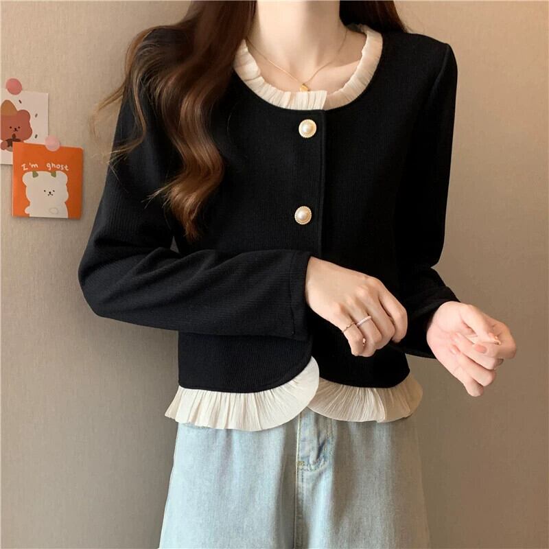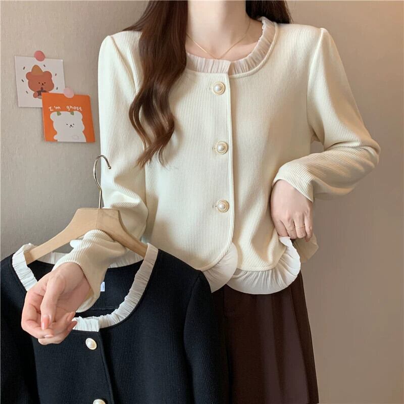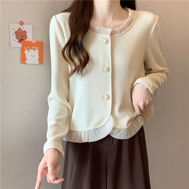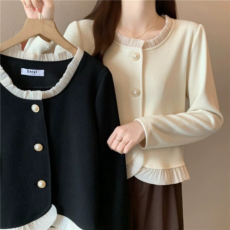 プラスサイズの婦人服ファット mm 2023 新しい秋のファッション多目的カーディガン腹をカバーし、スリムに見えるフリルスプライシングトップ 大きめサイズ オータム 秋物 8884138497359237