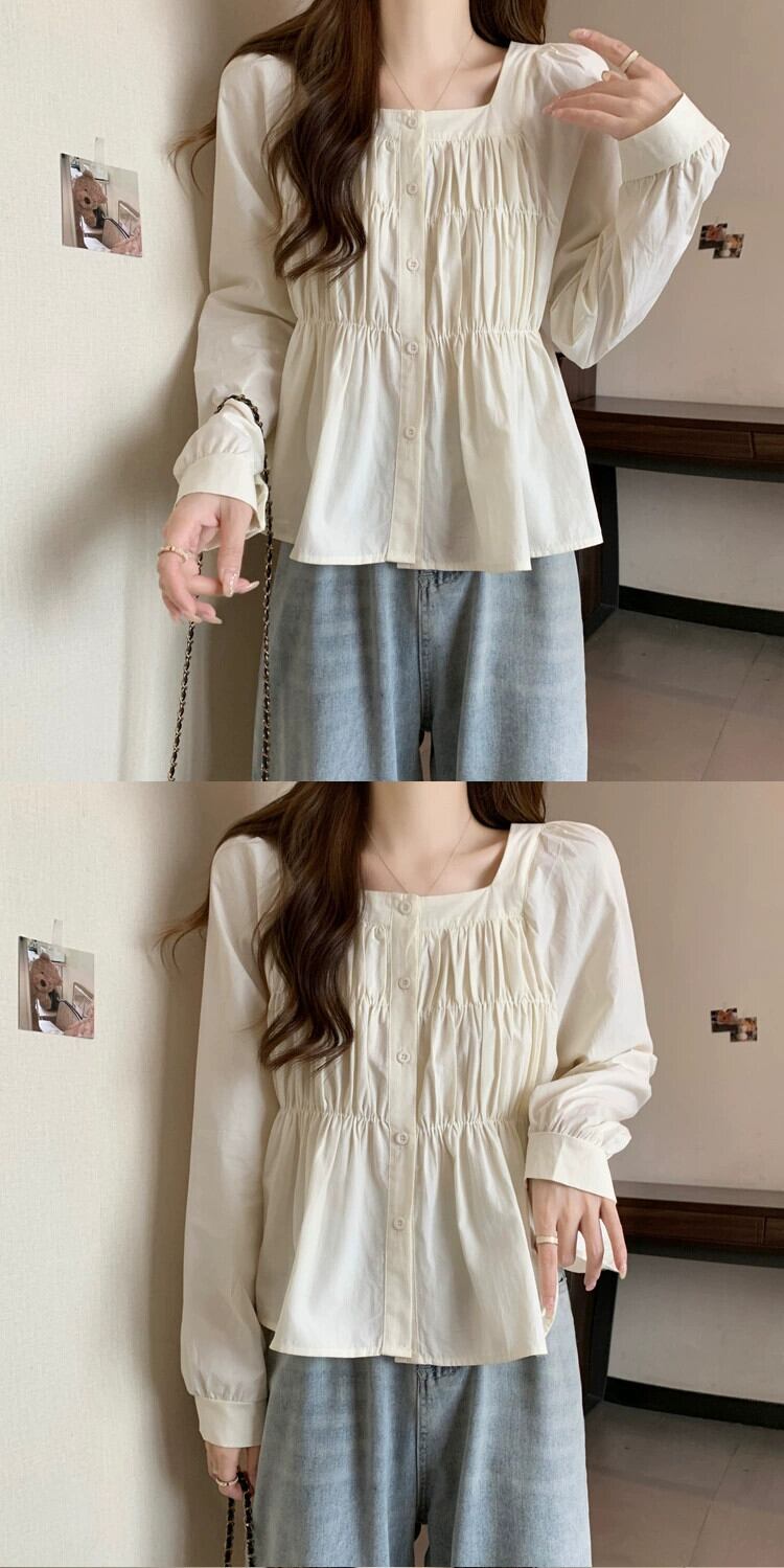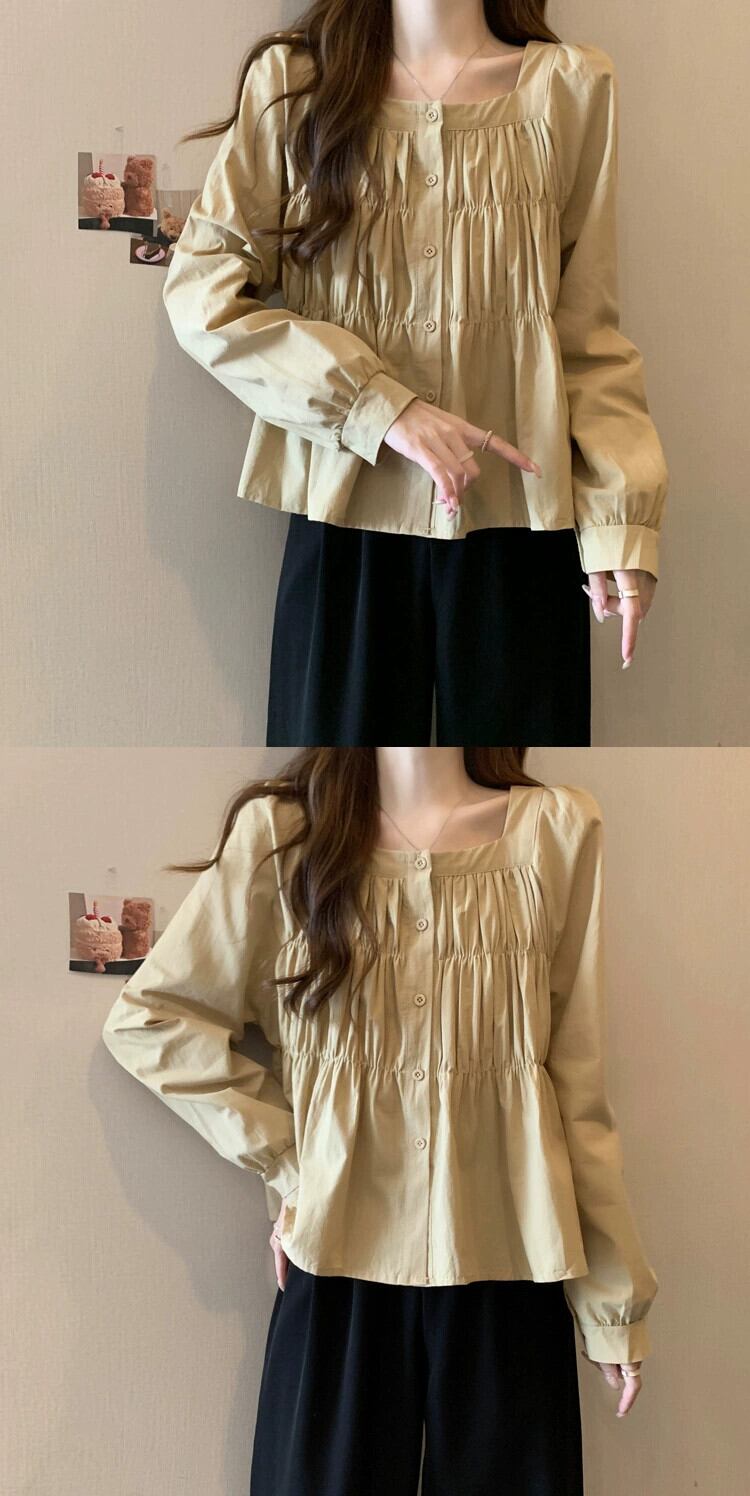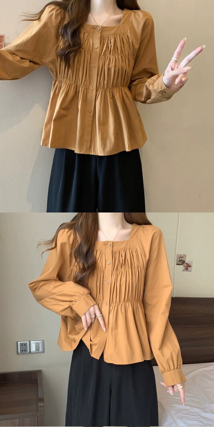 大きいサイズの秋のファッションプリーツウエスト長袖シャツ女性、太いmmデザインでお腹をカバーし、スリムに見える、トレンディなトップス ロング 大きめサイズ オータム 秋物 8884197879830396