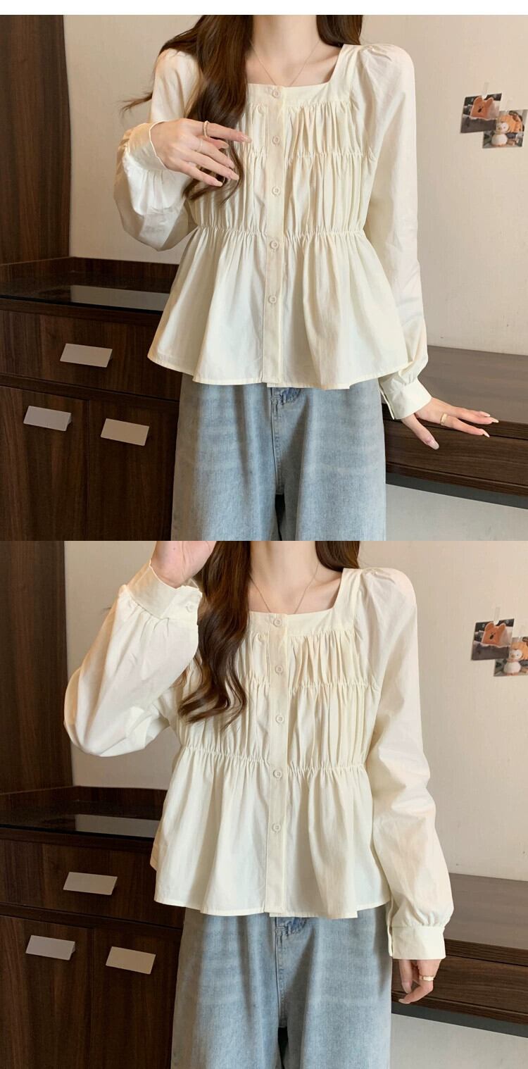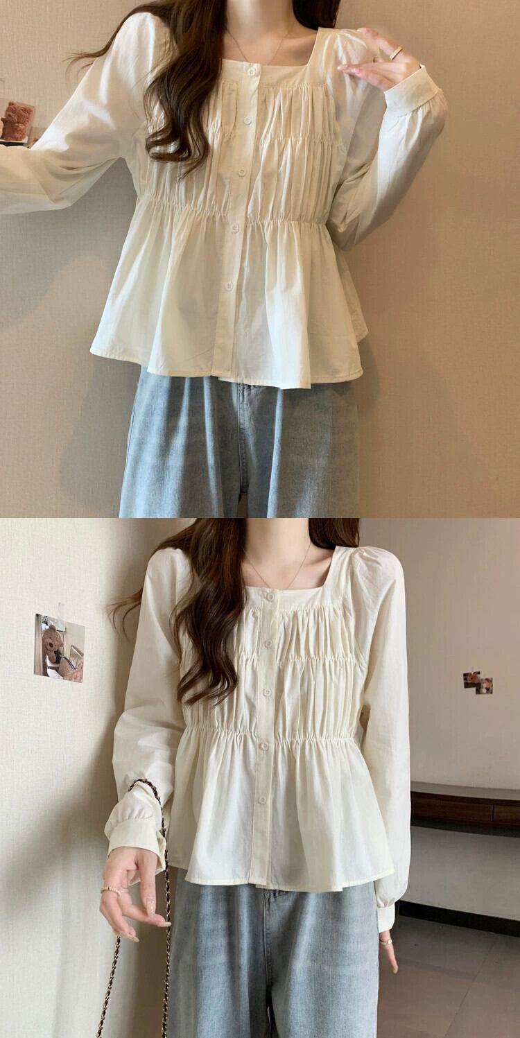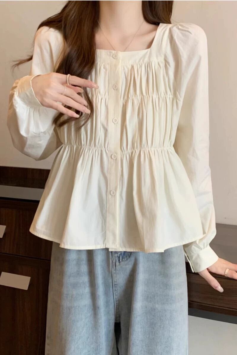 大きいサイズの秋のファッションプリーツウエスト長袖シャツ女性、太いmmデザインでお腹をカバーし、スリムに見える、トレンディなトップス ロング 大きめサイズ オータム 秋物 8884197879830396