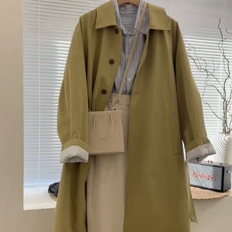 プラスサイズの女性のファットMM初秋2023新しい英国の小さなカジュアルワークウェアウインドブレーカーヘップバーンスタイルのコート 大きめサイズ オータム 秋物 8884176309390855