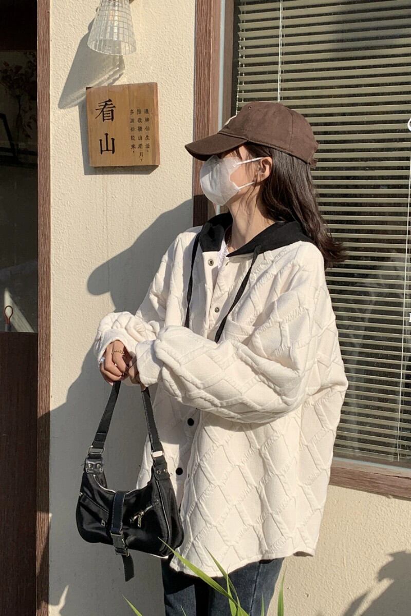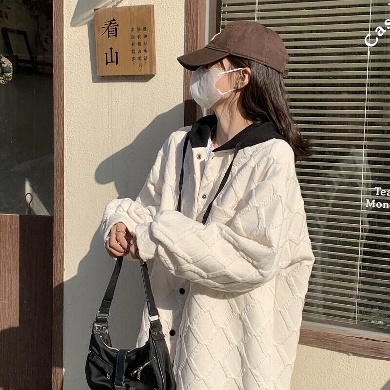 プラスサイズの婦人服脂肪初秋 2023 新しいフード付きデザインコート緩い怠惰なスタイルカジュアル無地トップ 大きめサイズ オータム 秋物 ソリッドカラー 8884160090932721