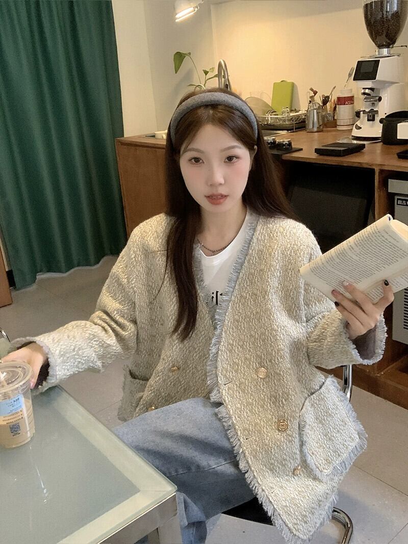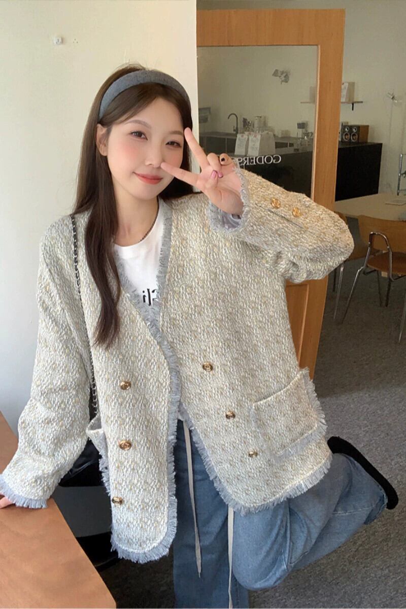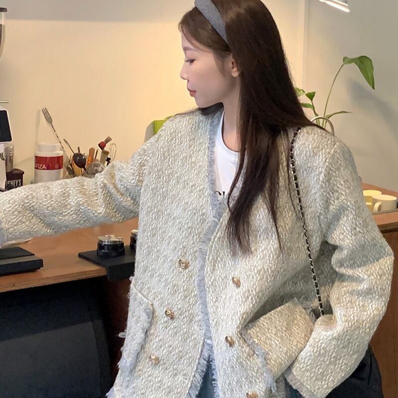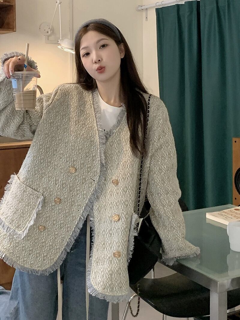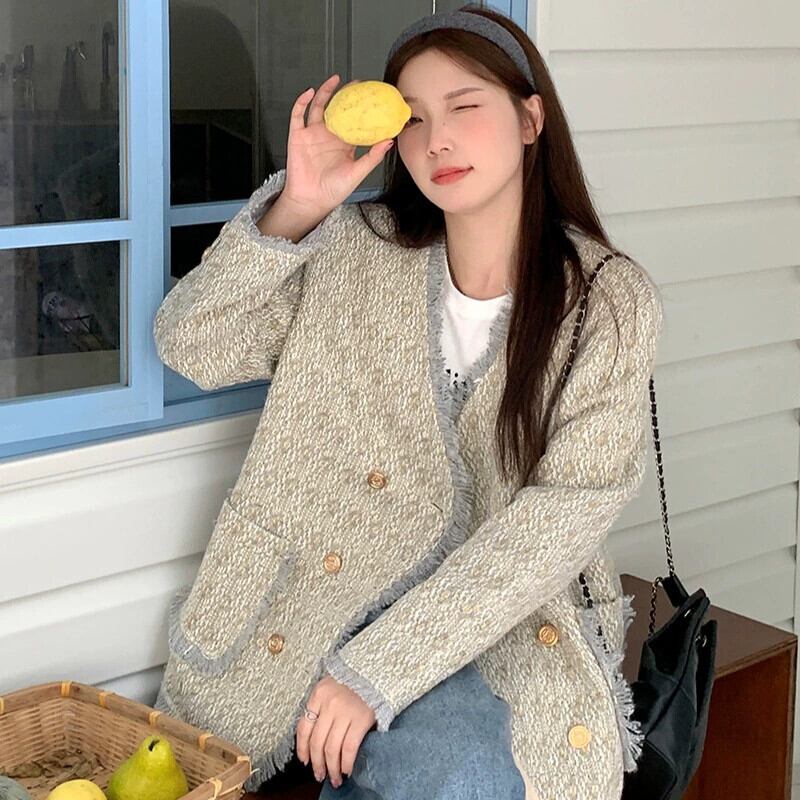 プラスサイズの婦人服ファットmm 2023秋の新作綿と厚みのあるジャケット、ハイエンドの気質、ゆったりとした痩身ツイードトップス コットン 大きめサイズ オータム 秋物 8884162047243567