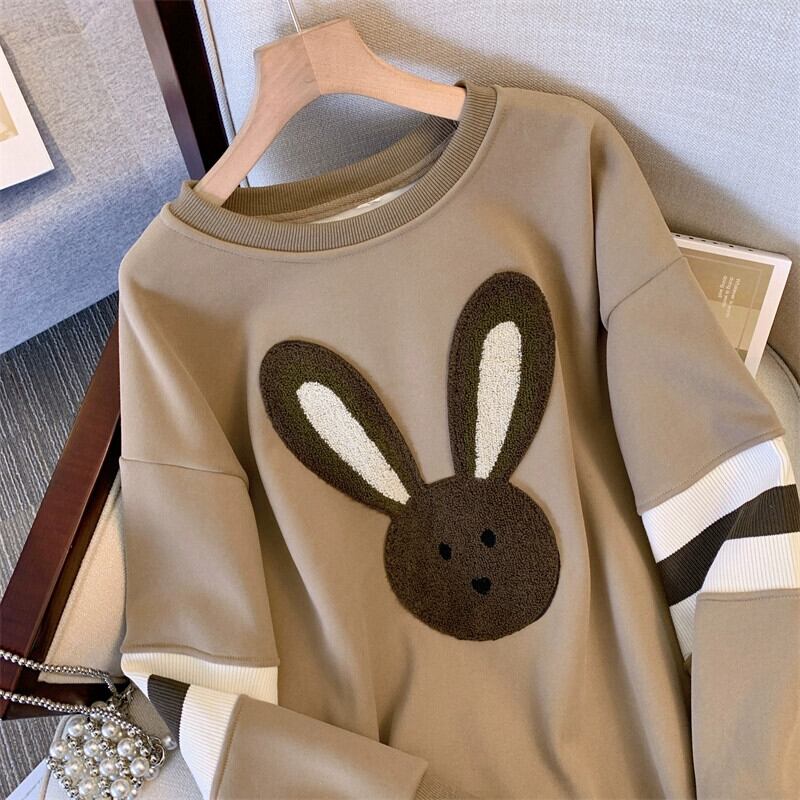 2023 秋服プラスサイズの女性の服多用途カバー肉体可能な漫画ウサギラウンドネックトレーナーかわいい年齢削減トップス脂肪女の子 大きめサイズ 大人ガーリー スウィート キュート カジュアル オータム 秋物 Oネック 8884110503924457