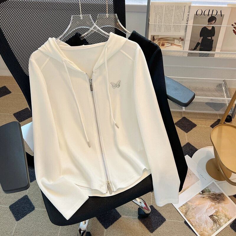 大きいサイズ 2023 秋の新ファット mm ファッショナブルで多用途なカジュアル フード付き長袖刺繍ジッパー カーディガン無地トレーナー ロング レッド 大きめサイズ オータム 秋物 ソリッドカラー 8884150838285418