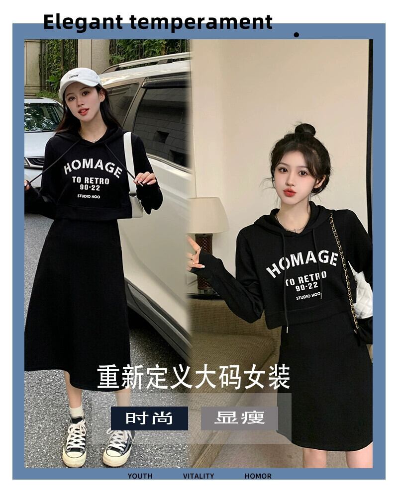 プラスサイズの婦人服ファットMM初秋2023多用途西洋スタイルドレスニッチウエストロングスカート 大きめサイズ オータム 秋物 8884137608813405