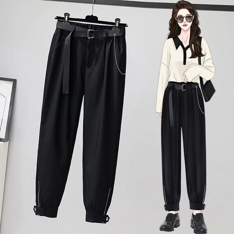 プラスサイズの婦人服ファットミリメートル 2023 新しい秋スタイルレギンスオーバーオールルーズ痩身ハイウエスト 9 点パンツハーレムカジュアルパンツ ハイウェスト 大きめサイズ オータム 秋物 8884147512020431