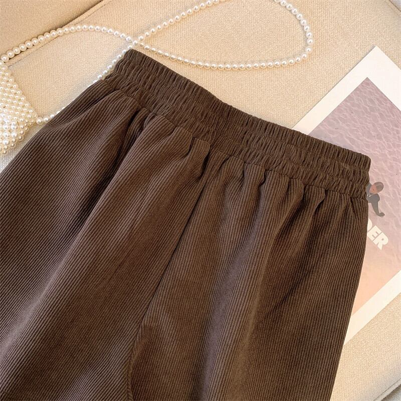 プラスサイズの婦人服 2023 秋の新コーデュロイ A ラインアウターショーツファット mm ハイウエストスリムカジュアルブーツパンツ ハイウェスト 大きめサイズ オータム 秋物 ブルマー Aライン 8884122913693006