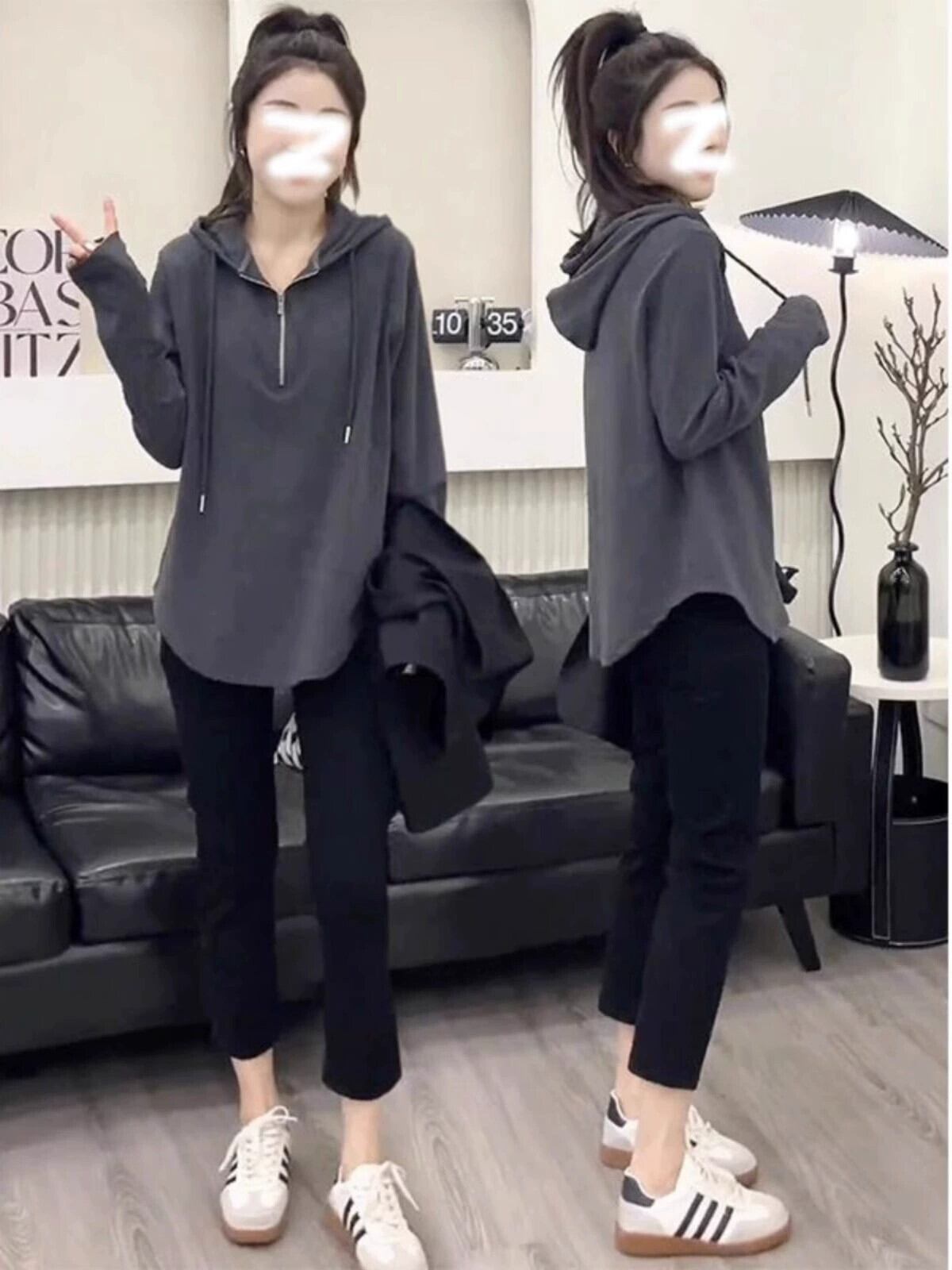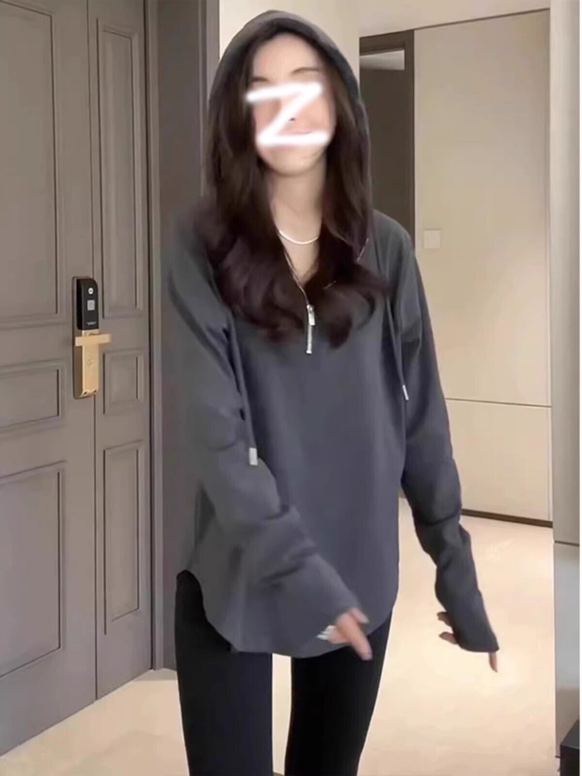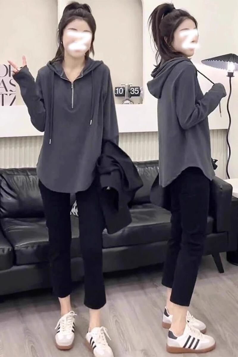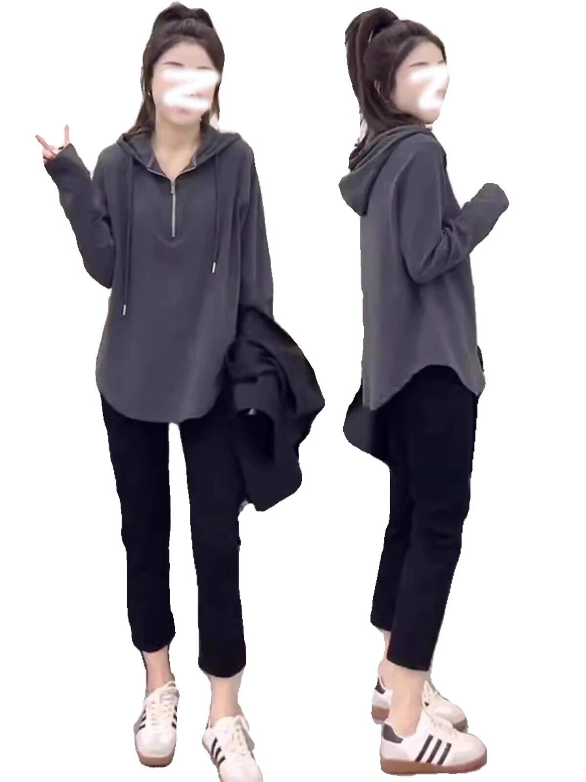 大きいサイズアメリカンファットmmフード付きジッパースウェットシャツ2023秋痩身お腹カバー人気長袖インナートップレディース ロング 大きめサイズ オータム 秋物 8884110621276482