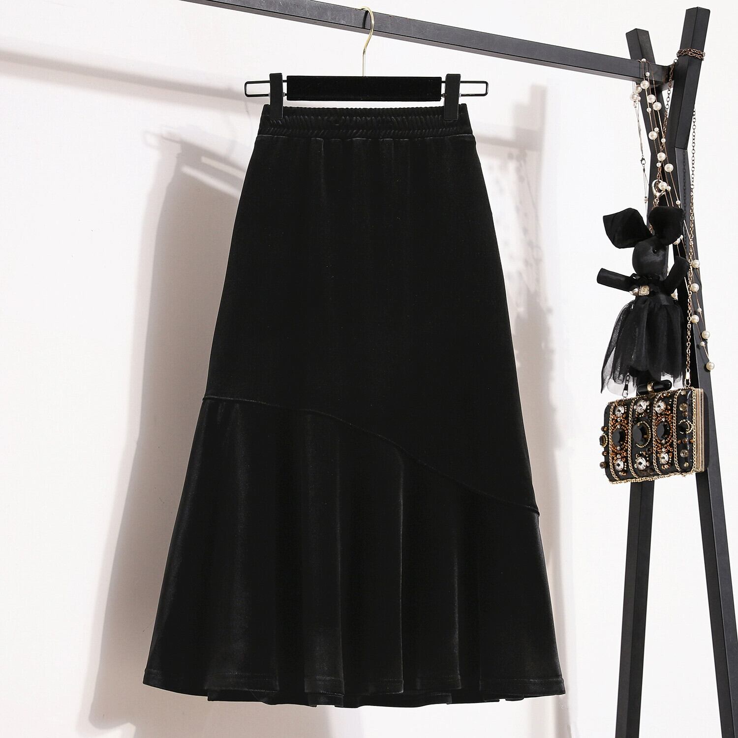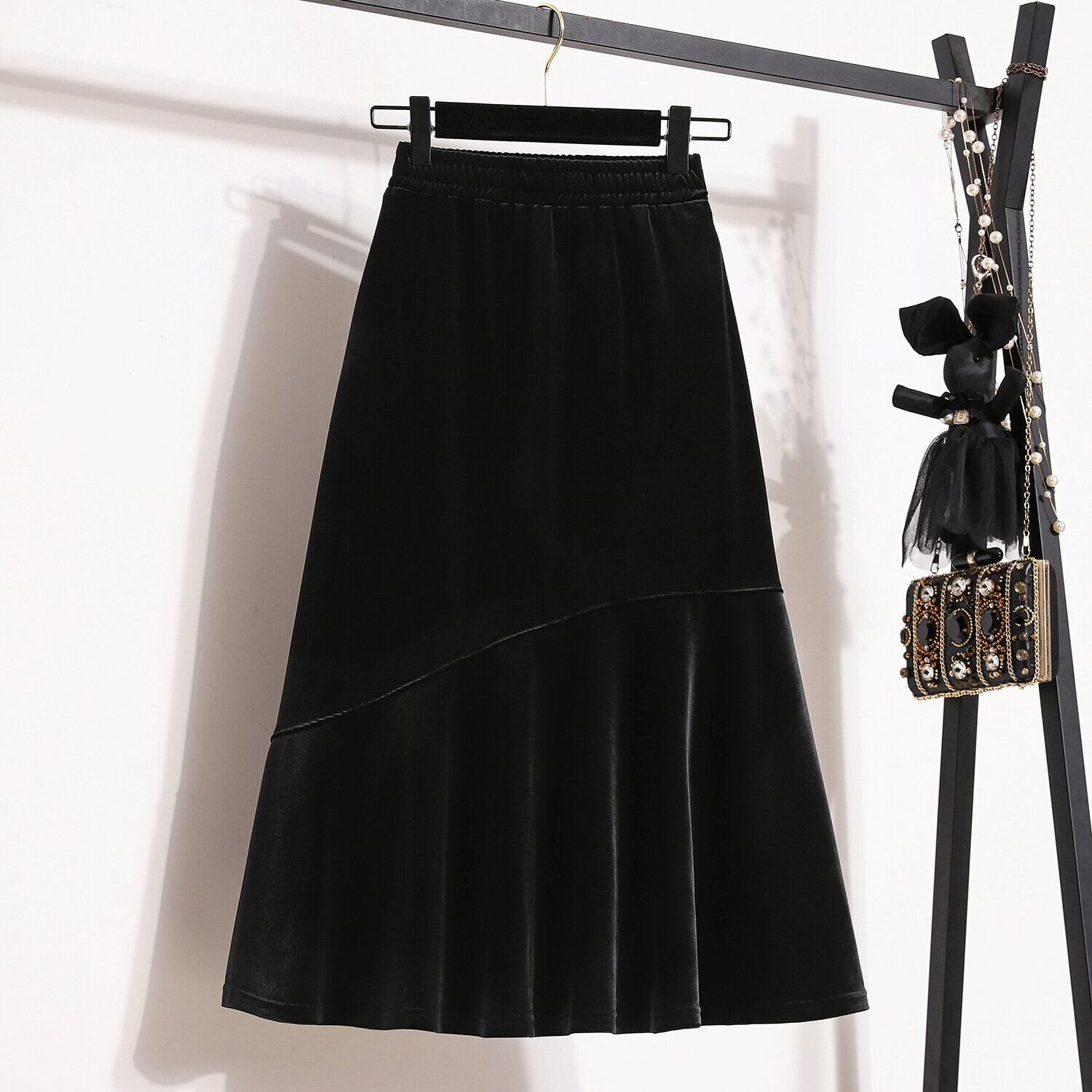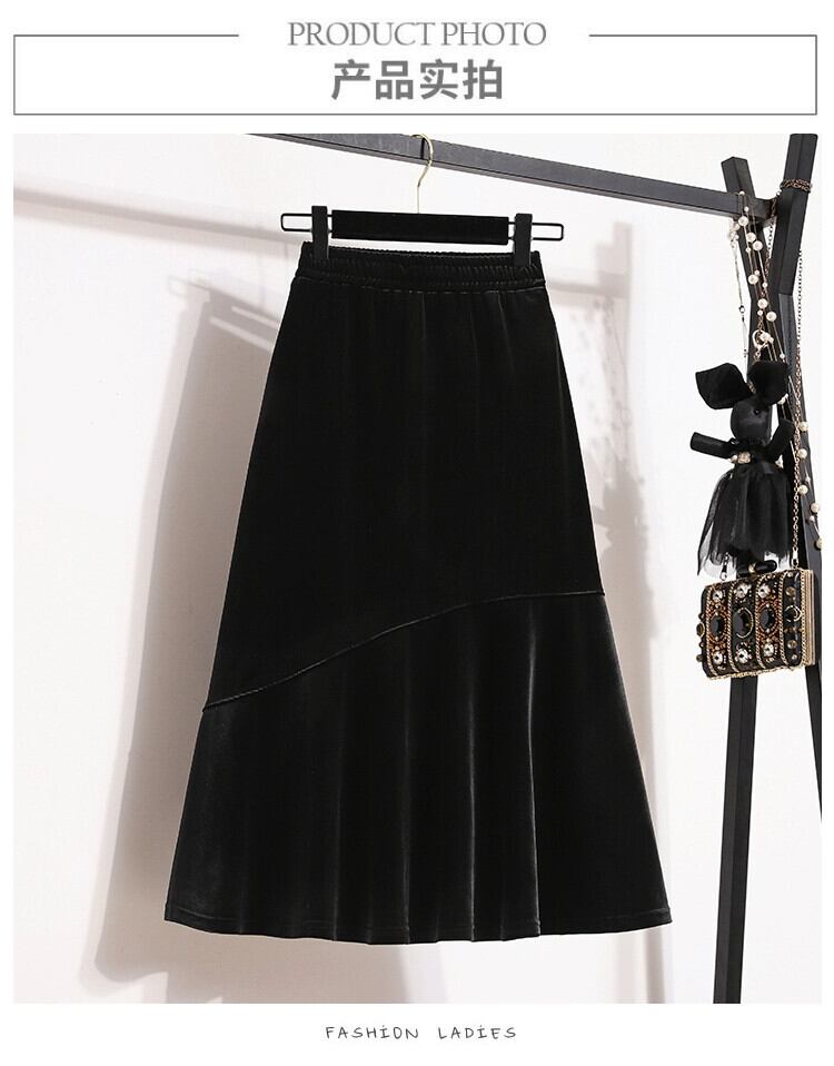 プラスサイズの秋の新ソリッドカラーデザインスカート脂肪女性ニッチハイウエストスリムミッドレングスAラインスカートトレンディな ハイウェスト 大きめサイズ オータム 秋物 8884171187426513