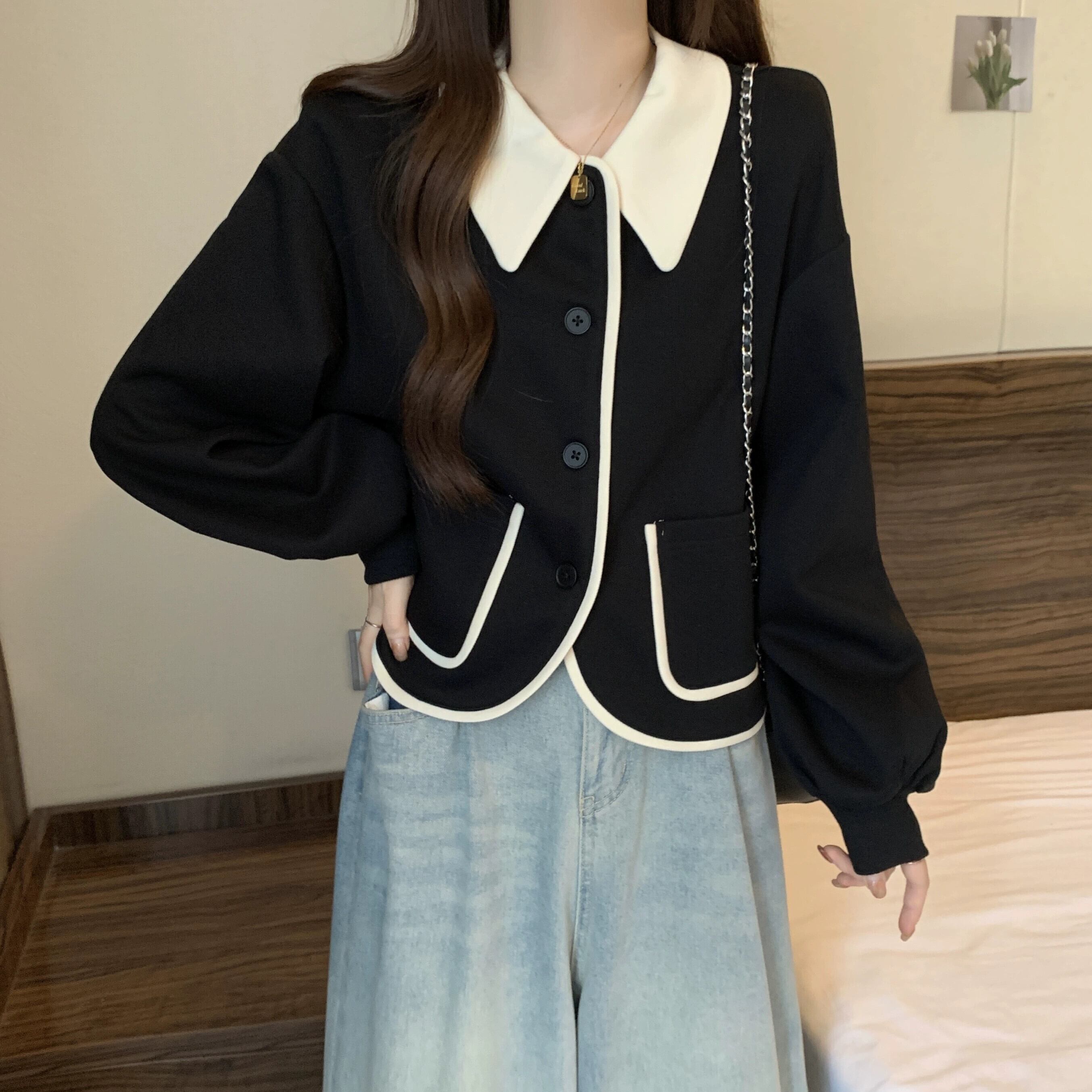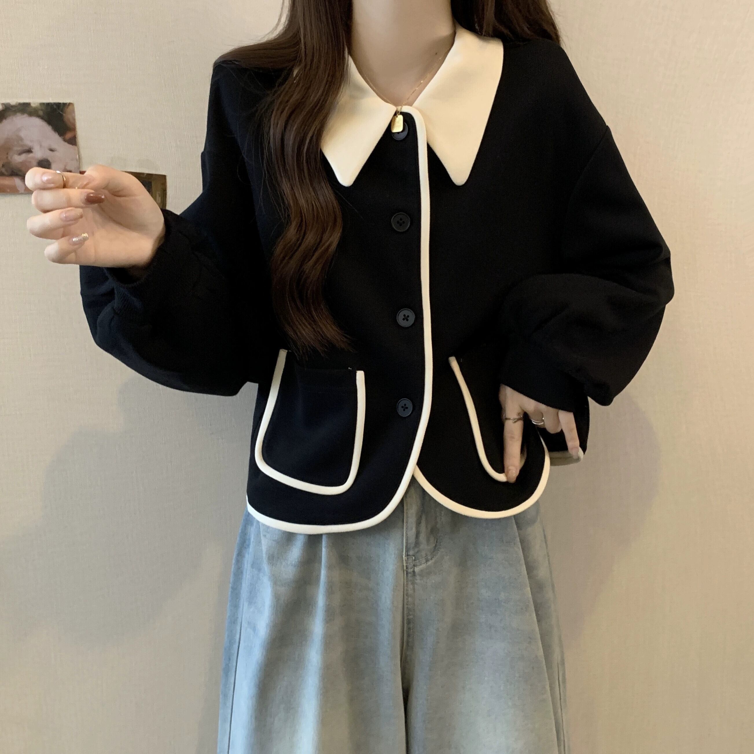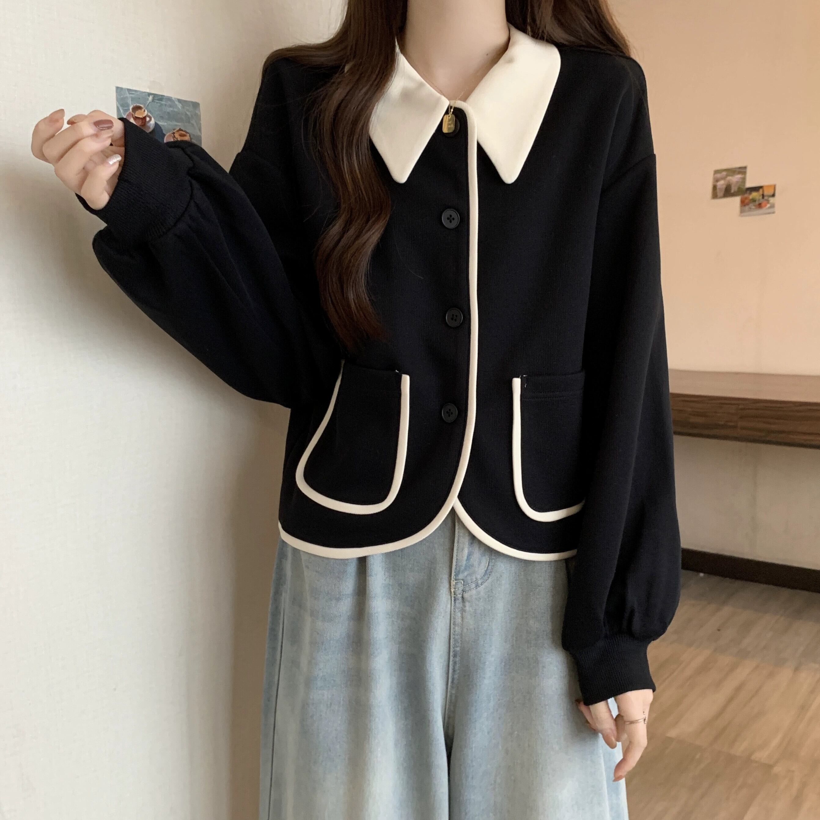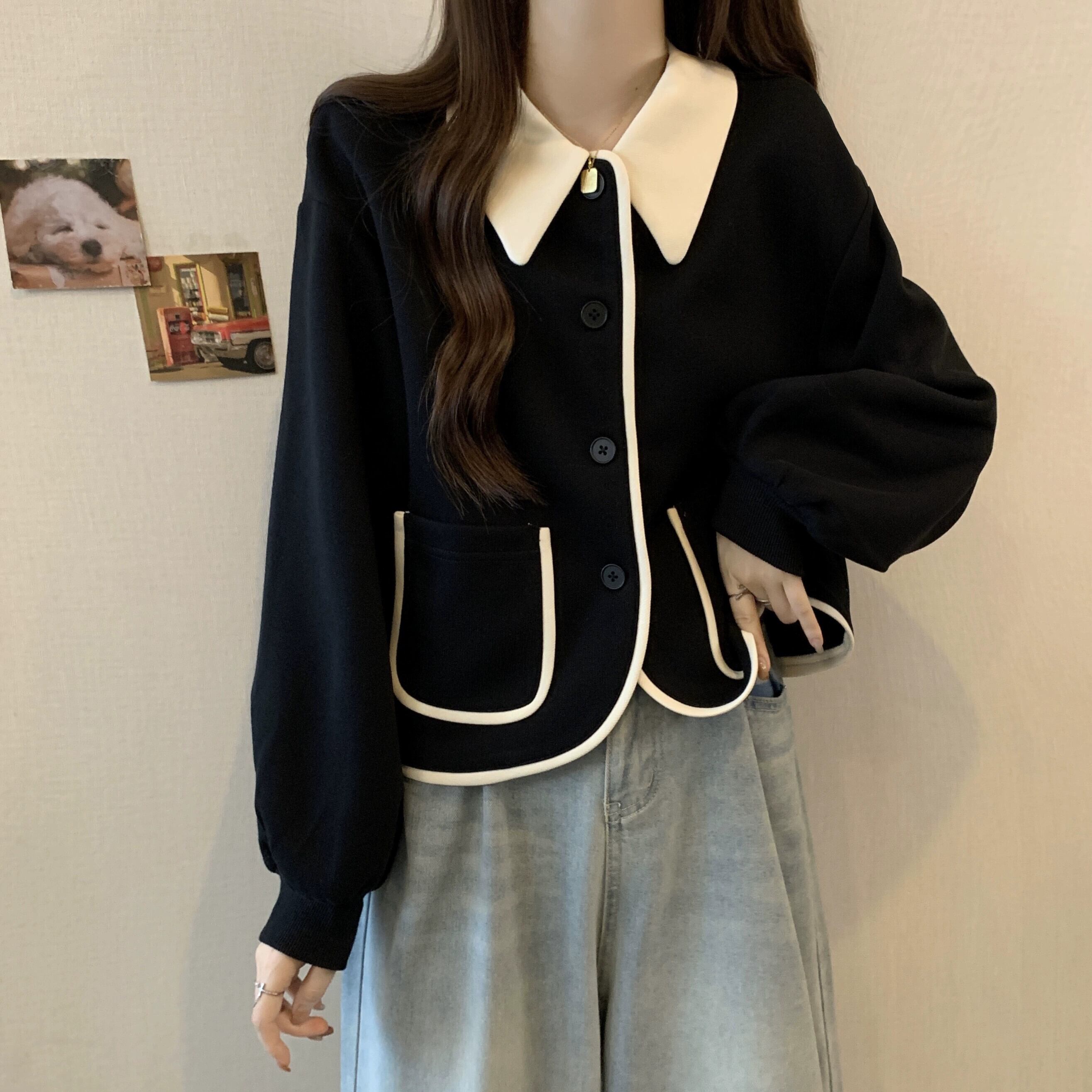 プラスサイズ秋の新レトロ人形襟セーターカーディガンコート脂肪ミリメートル女性痩身ルーズ長袖ニットトップ ロング 大きめサイズ オータム 秋物 888416189458704