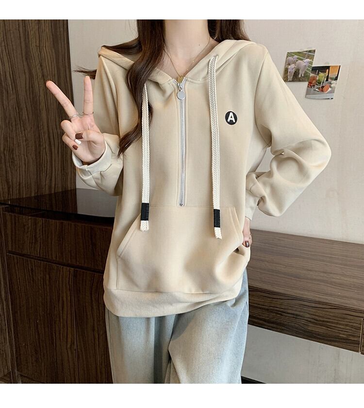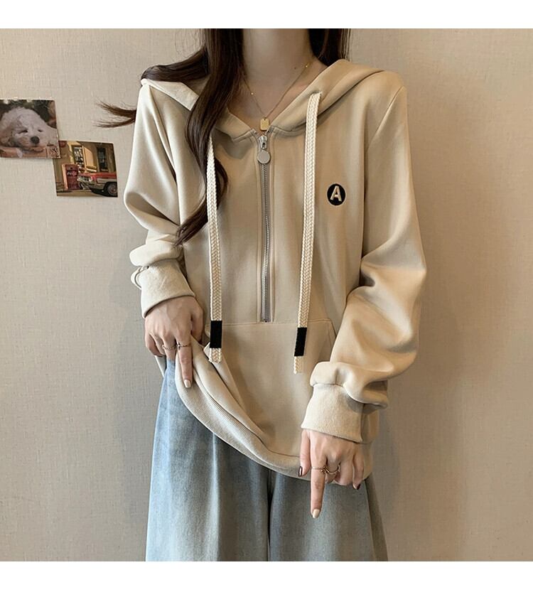 大きいサイズ 2023 秋の新ファット mm レディースカジュアル多用途ジッパー巾着フード付き長袖ファッショナブルでシックなスウェットシャツ ロング 大きめサイズ オータム 秋物 8884196721961093