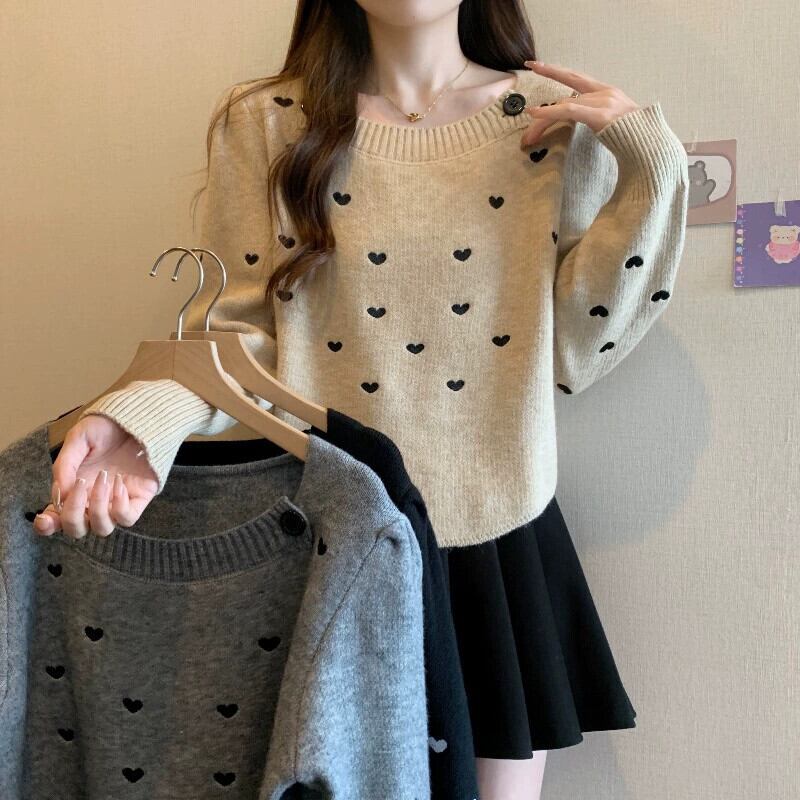 大きいサイズの秋の長袖ニットボトムセーター太った女性、スリムなデザイン、ゆったりとしたウエスタンスタイル、トレンディな肉をカバーするトップ ロング 大きめサイズ オータム 秋物 8884117168084146