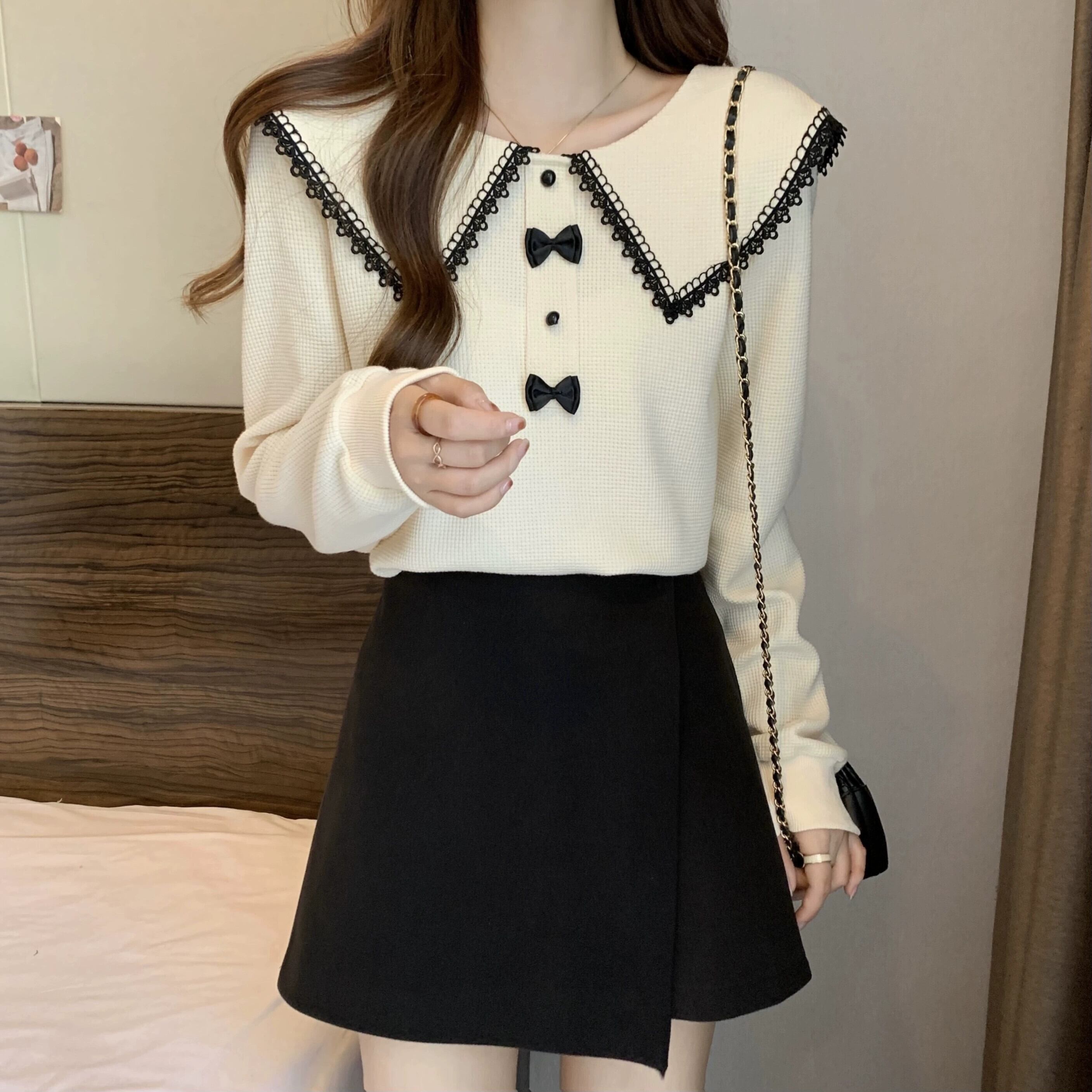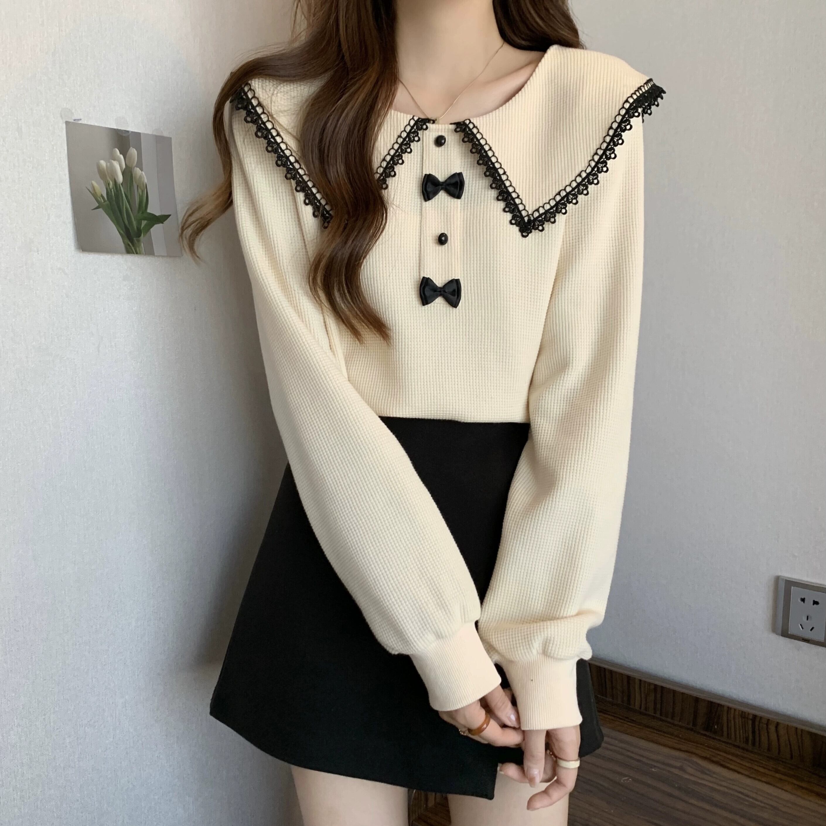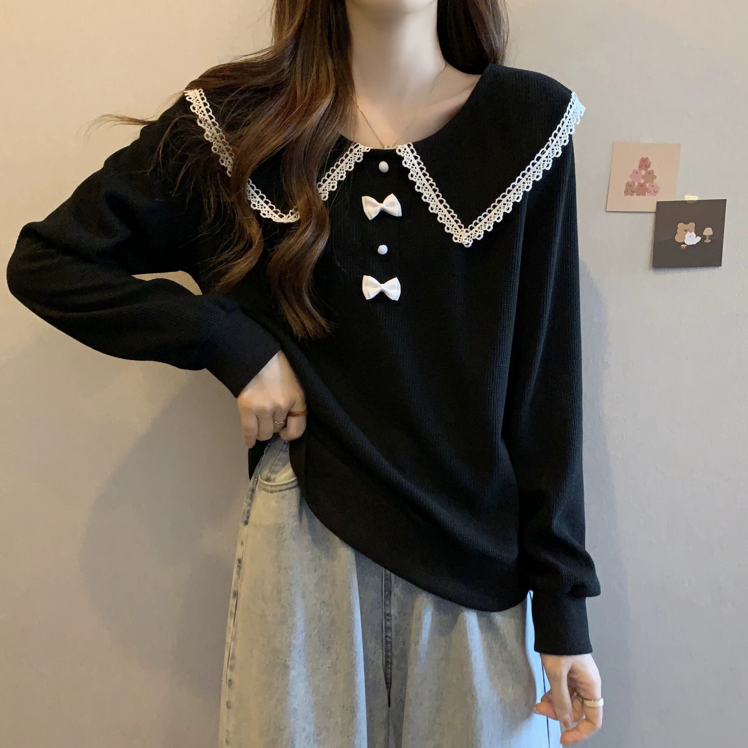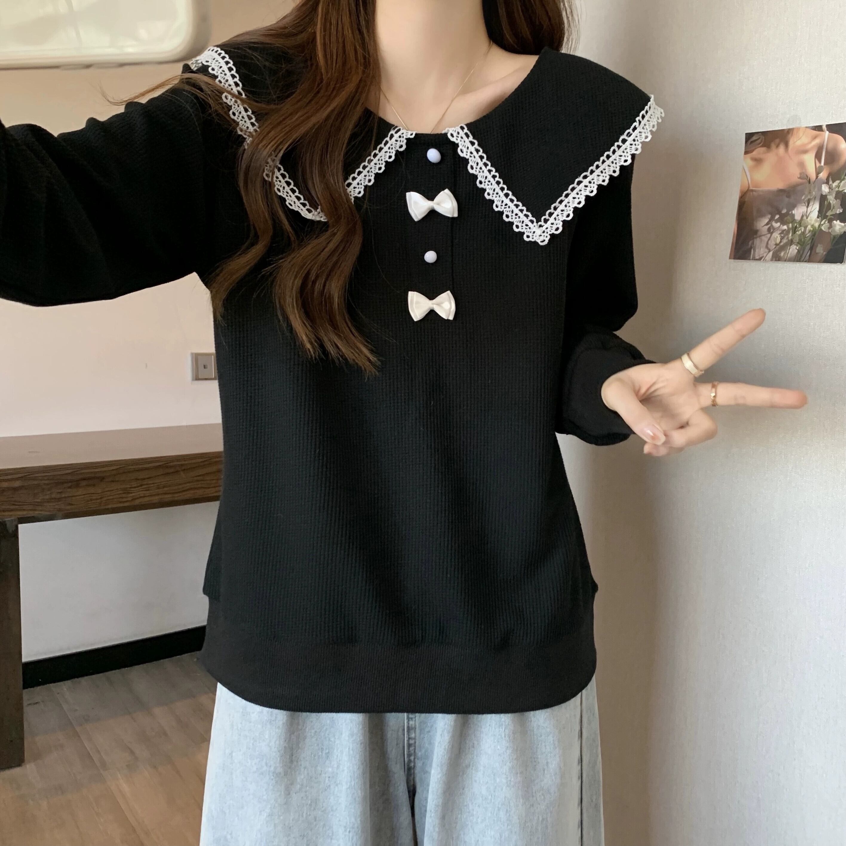 プラスサイズの婦人服 2023 ファットシスター秋の新ファッションスリム長袖トップカジュアル人形の襟年齢を減らすスウェットシャツ ロング 大きめサイズ オータム 秋物 8884139794711611